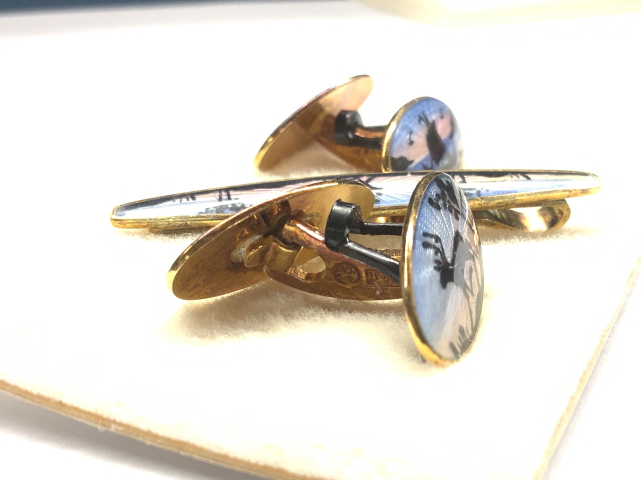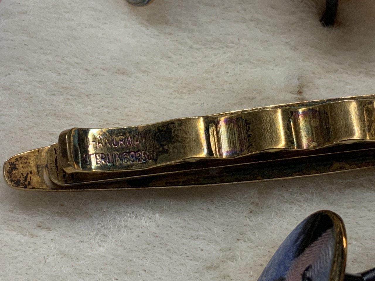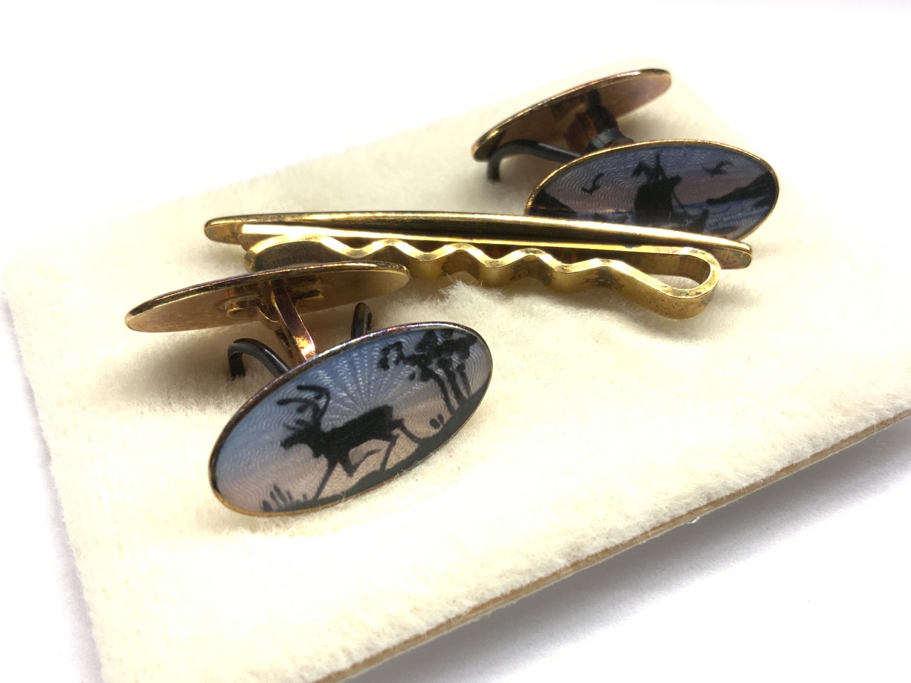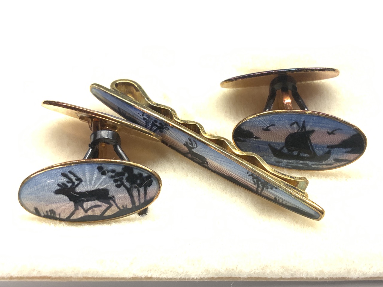 David Andersen Sterling Silver Enameled Cufflinks And Tie Clip Set. Norway 925. Signed.