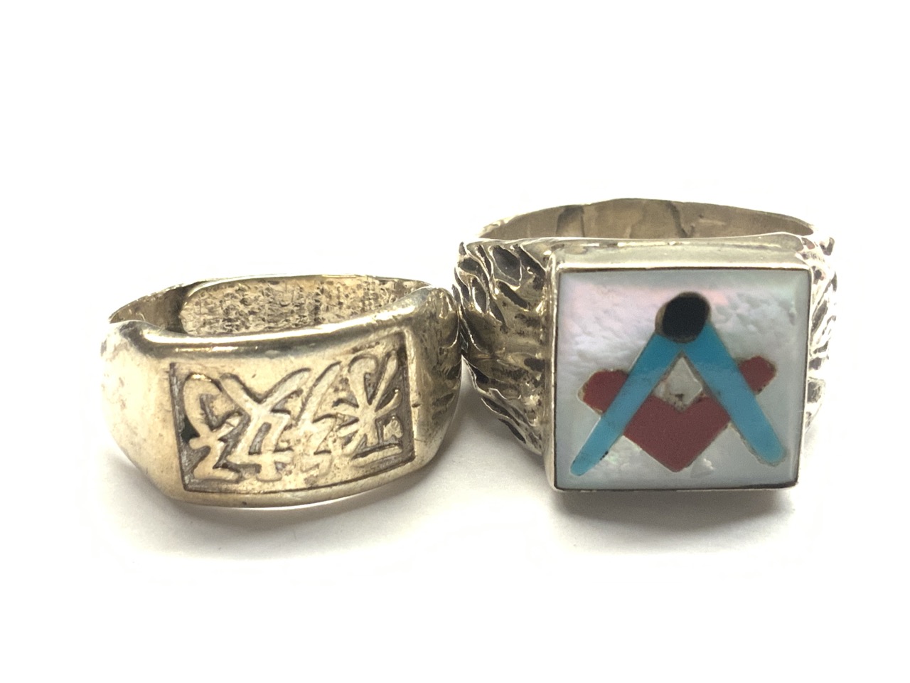 Two (2) Sterling Silver Rings. SIze 12-13. Chinese and Masonic.