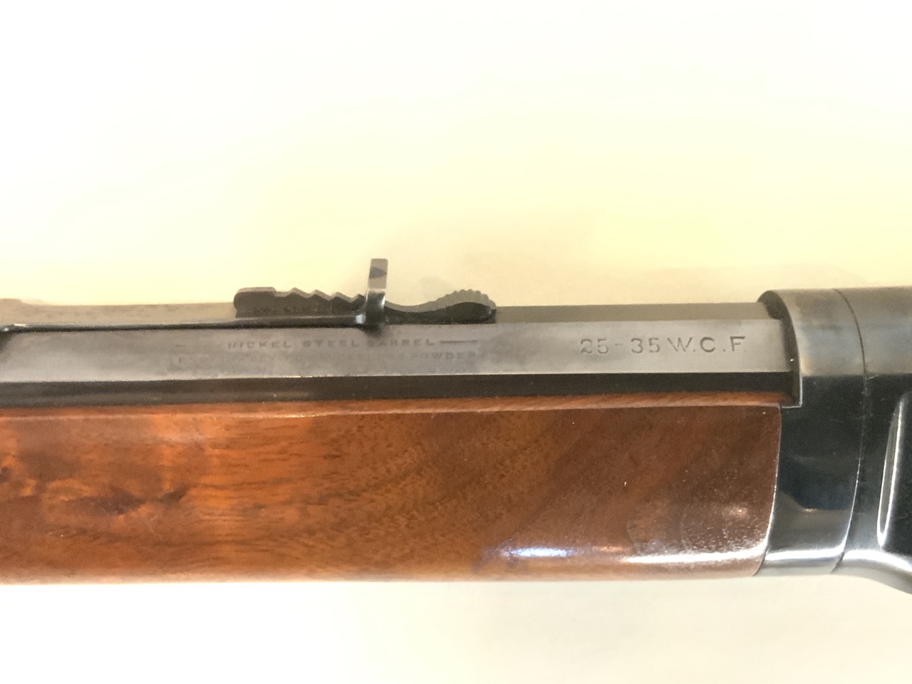 The Winchester Model 1894 25-35 W.C.F. was produced in 1895. It was one of the most popular hunting rifles up until the 1920s. The Model 1894 has an octagon nickel steel barrel which gives it a smokeless affect.