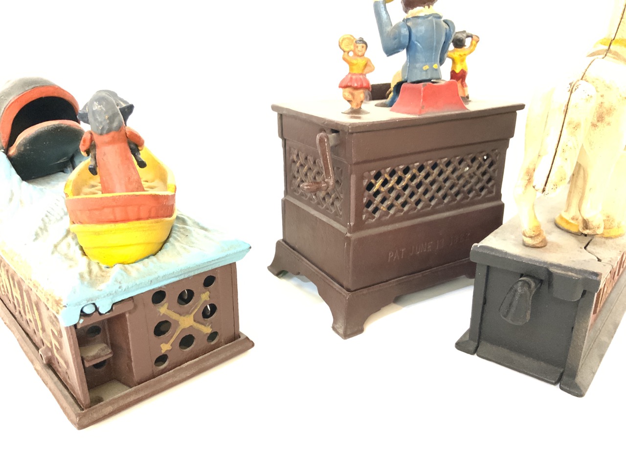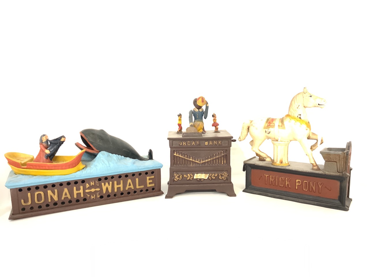 Three (3) Book Of Knowledge Cast Iron Mechanical Bank