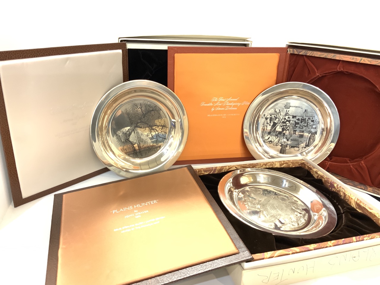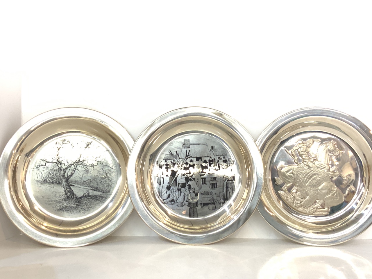 Three (3) Franklin Mint sterling silver presentation plates. Boxed. c.1970's