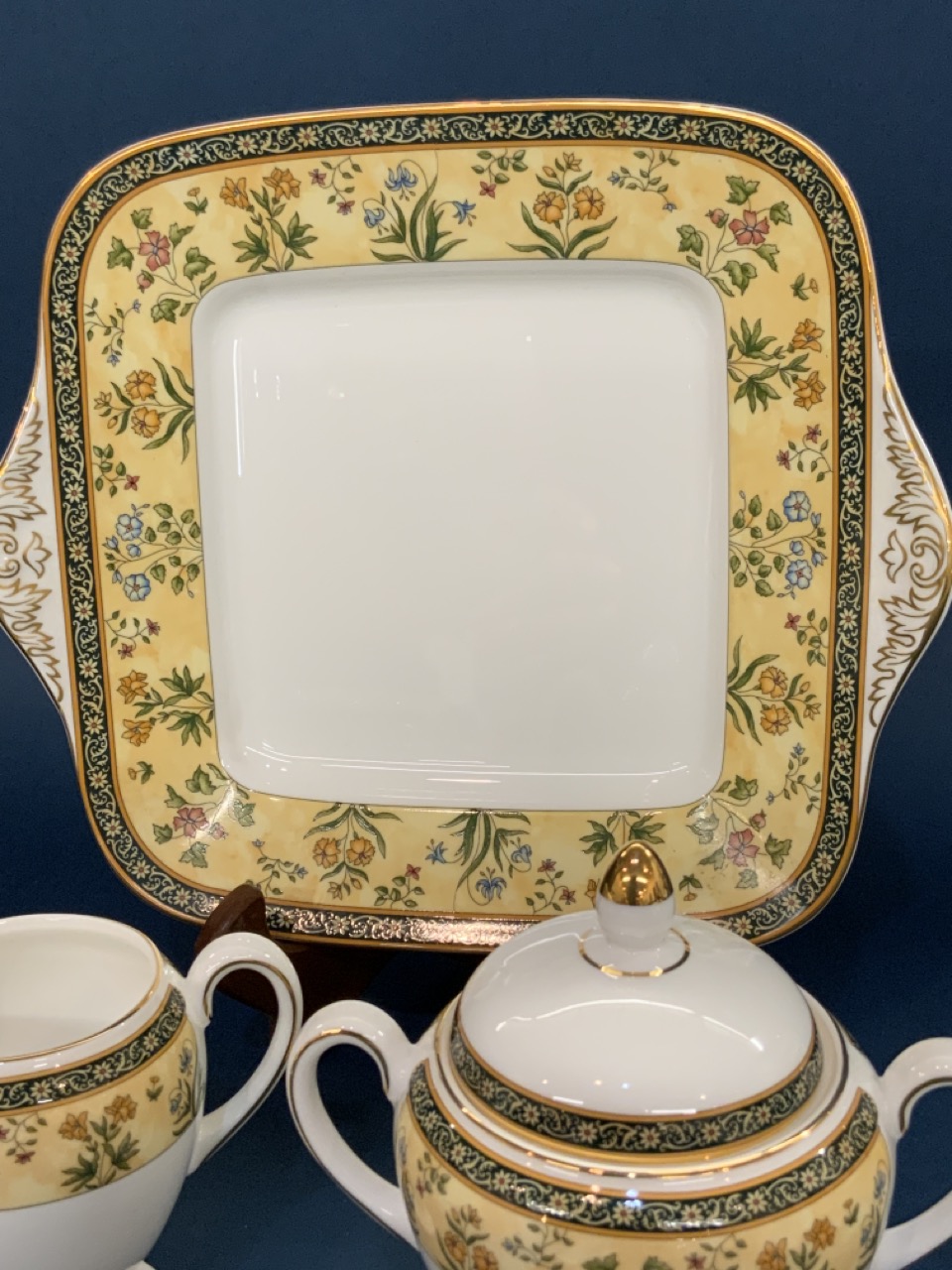 Wedgwood India porcelain sugar and creamer with square serving tray. Never used. Mint condition.