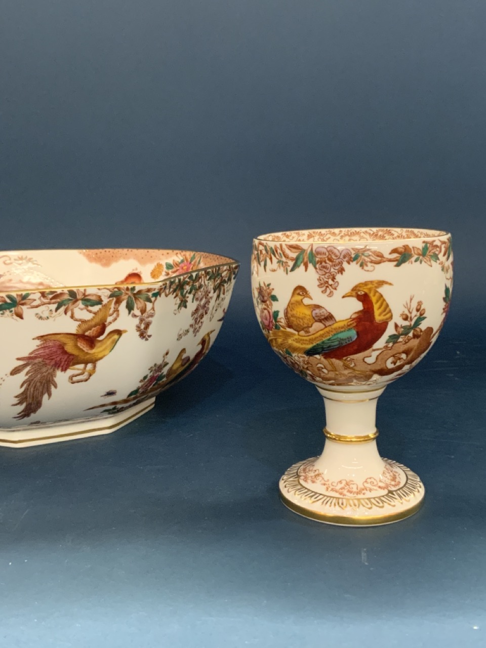 Royal Crown Derby Olde Avesbury English china serving bowl and chalice/goblet.