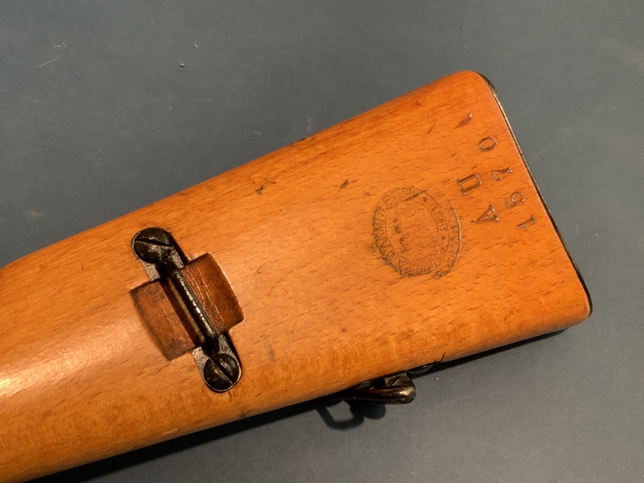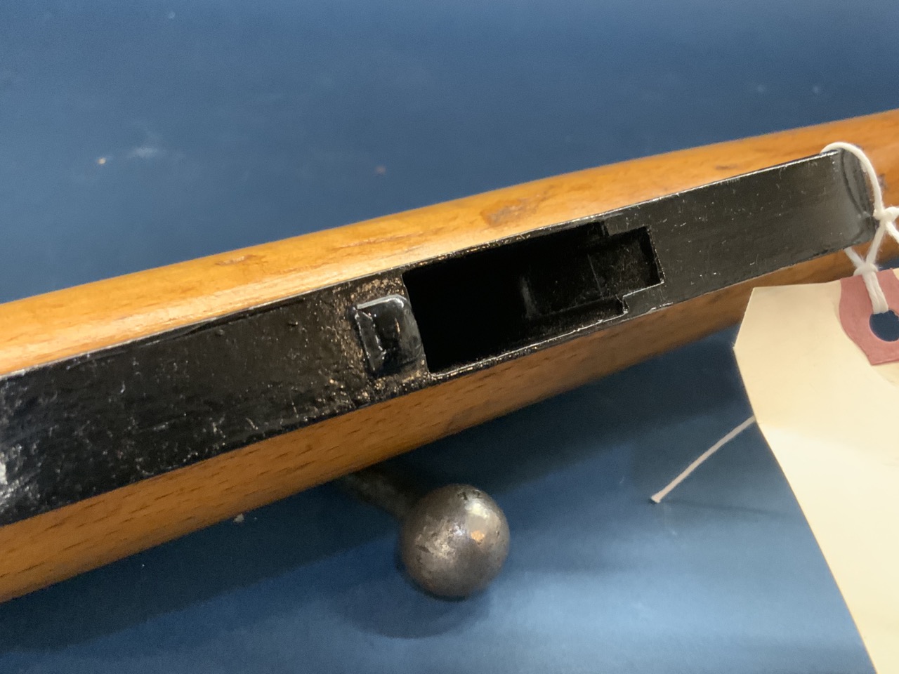 The rifle is in good condition. No rust is present, however there are alot of scuff marks on the gun. The rifle is missing its original clip magazine. The rifle's overall length is 36” Long.