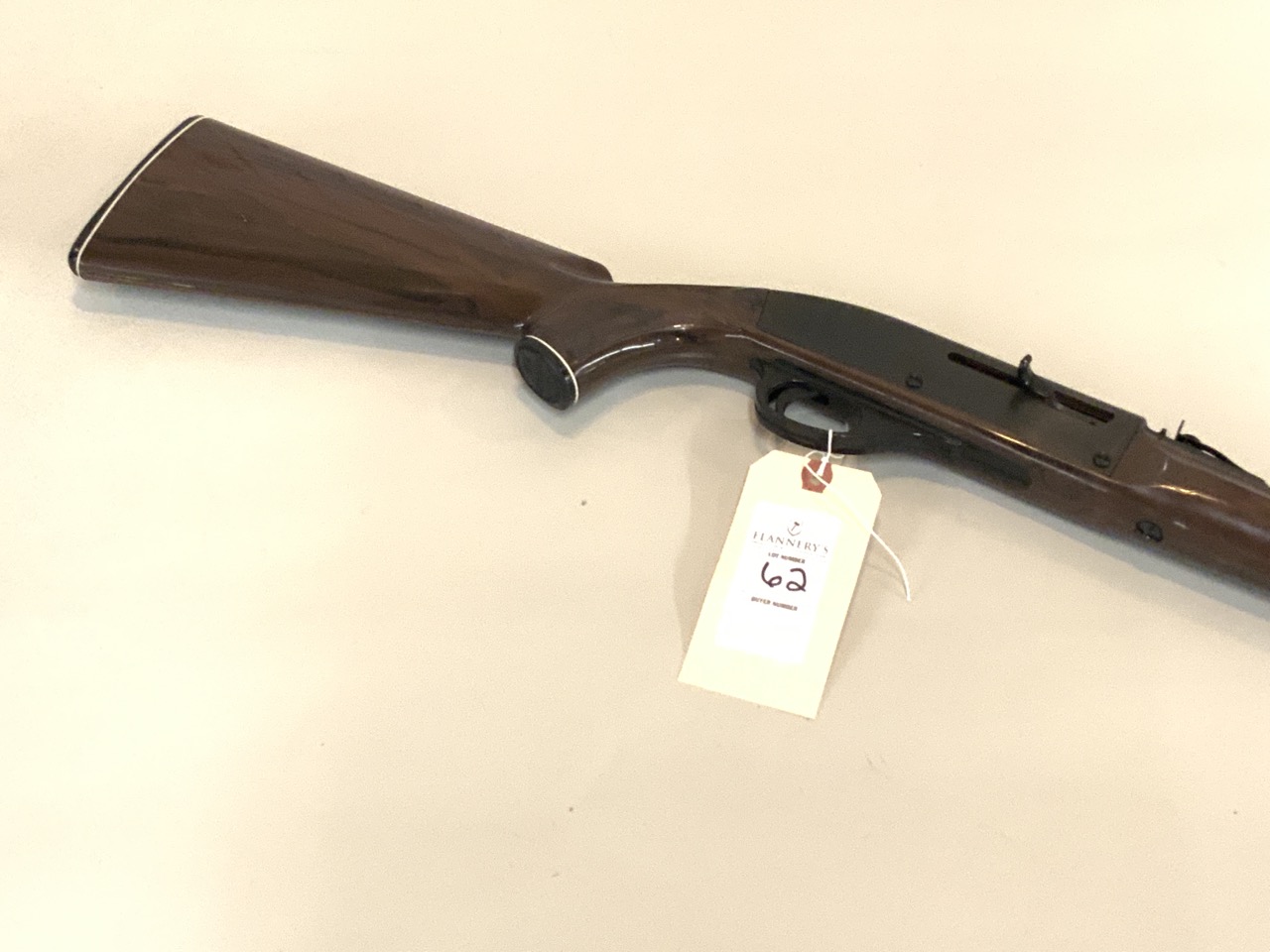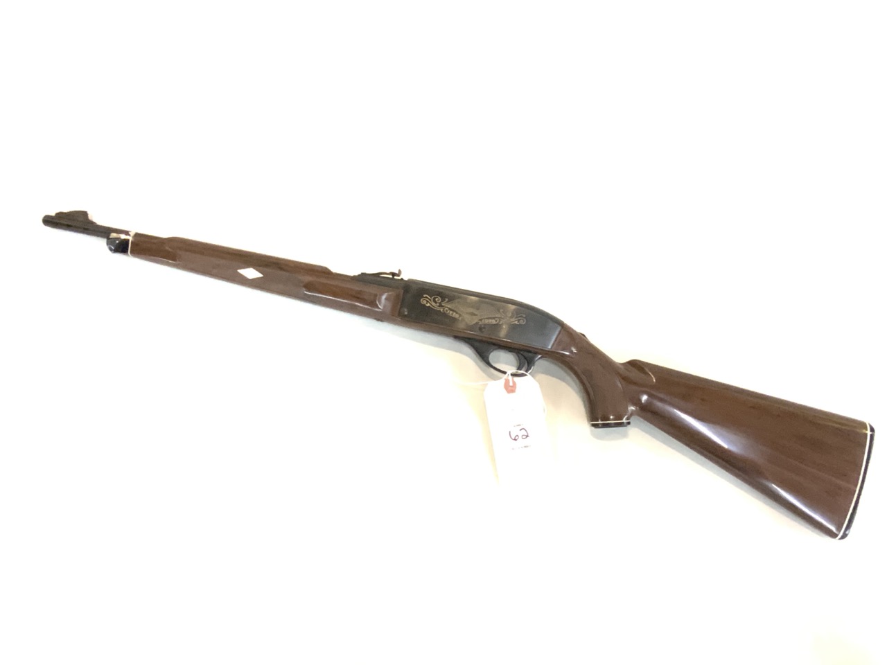 The Remington Nylon 66 Semi-Auto .22 Long Rifle is in good condition. No rust or scuffing present. The overall length of the rifle is 38 1/2"