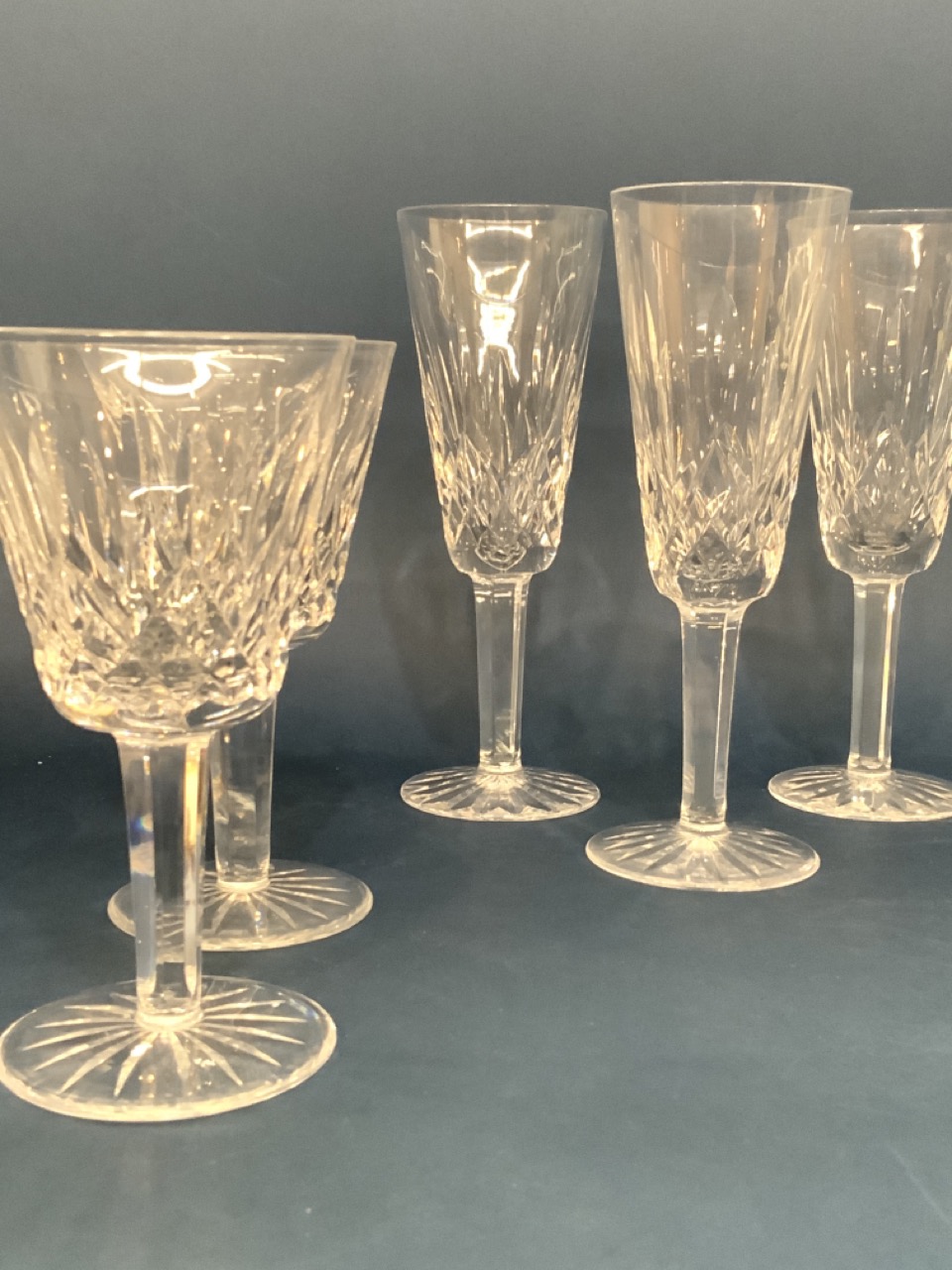 5" X 3" tumblers, 5 3/4" X 3" wines and 7 1/4" X 2 1/2" flutes