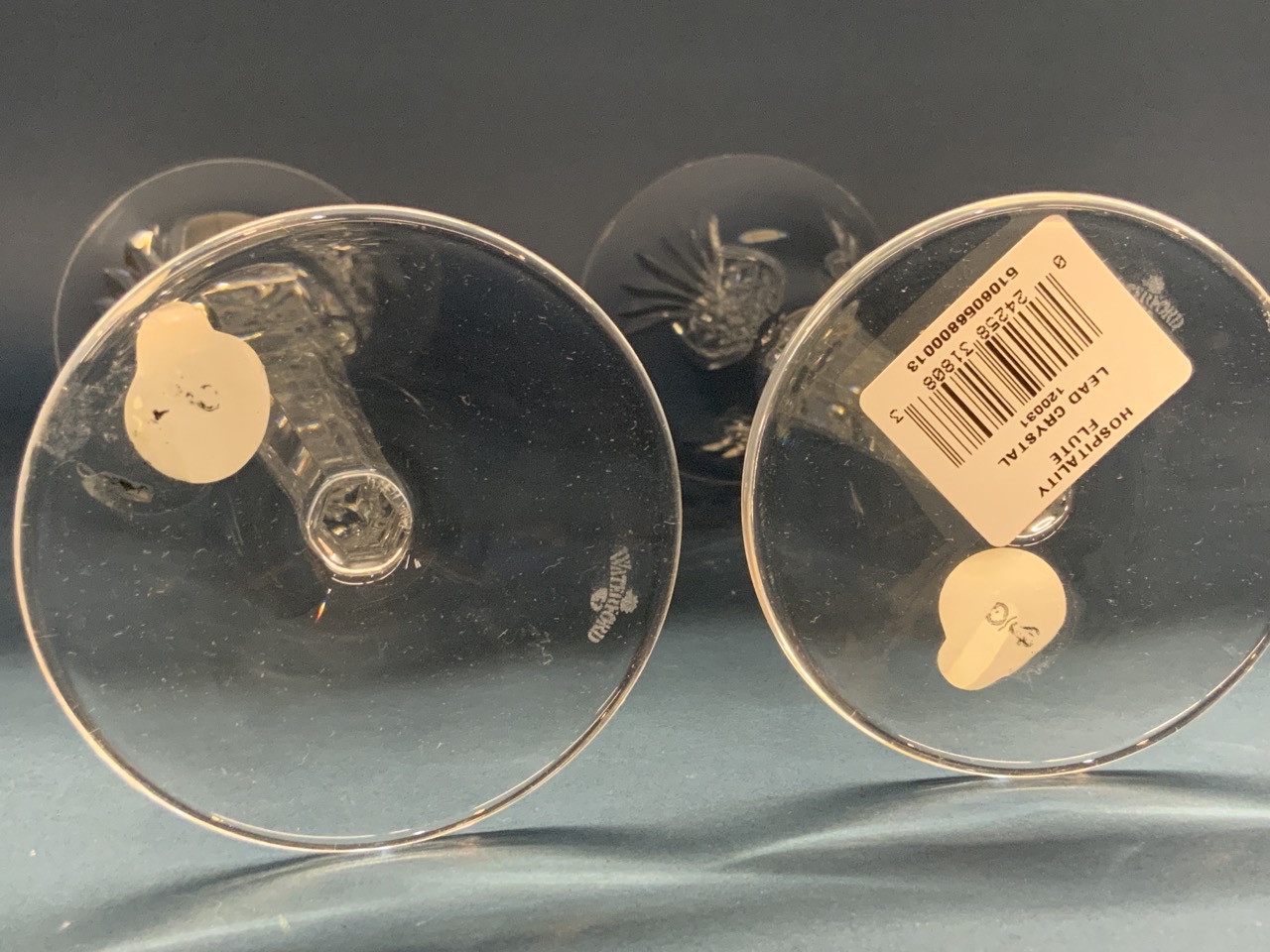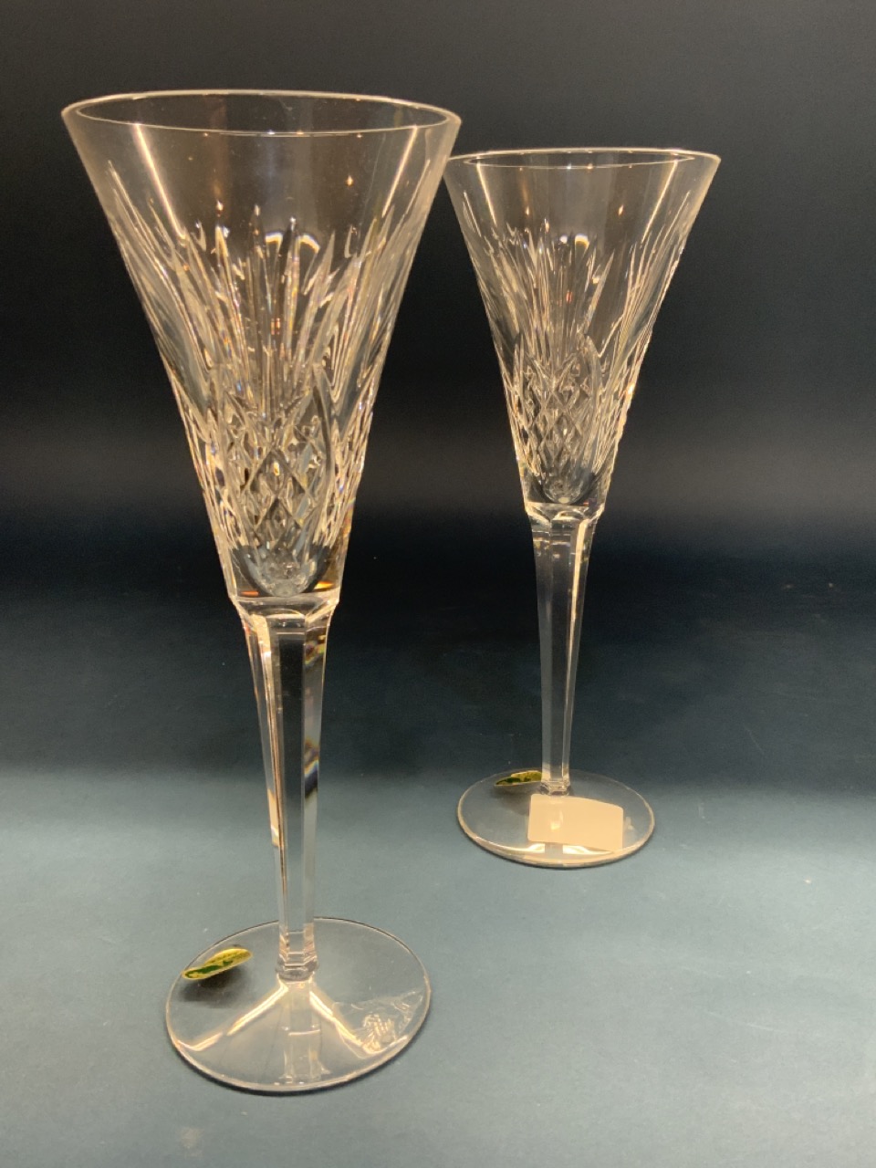A pair of Waterford crystal toasting champagne flutes.