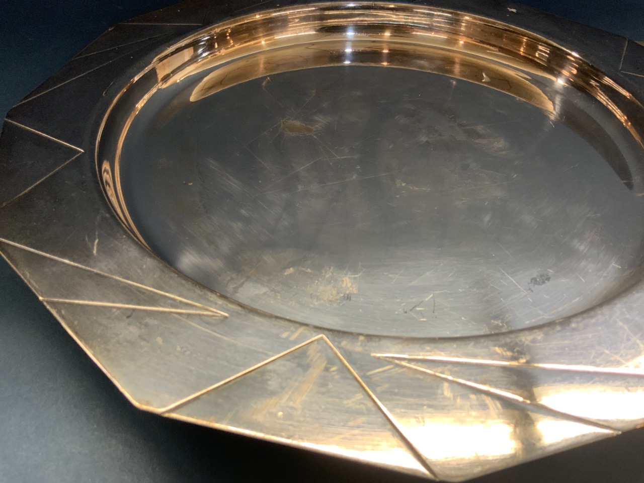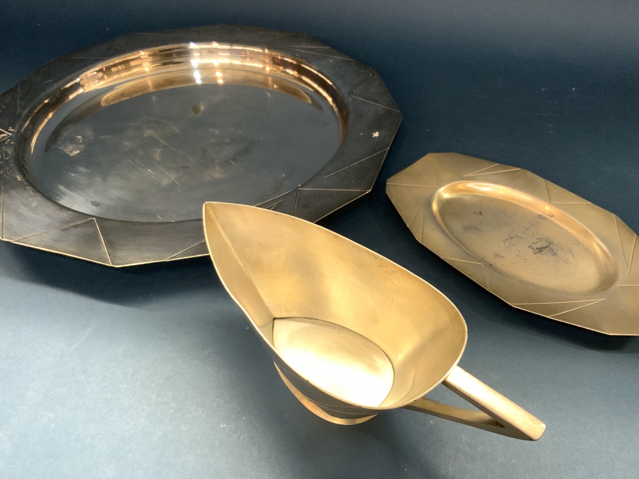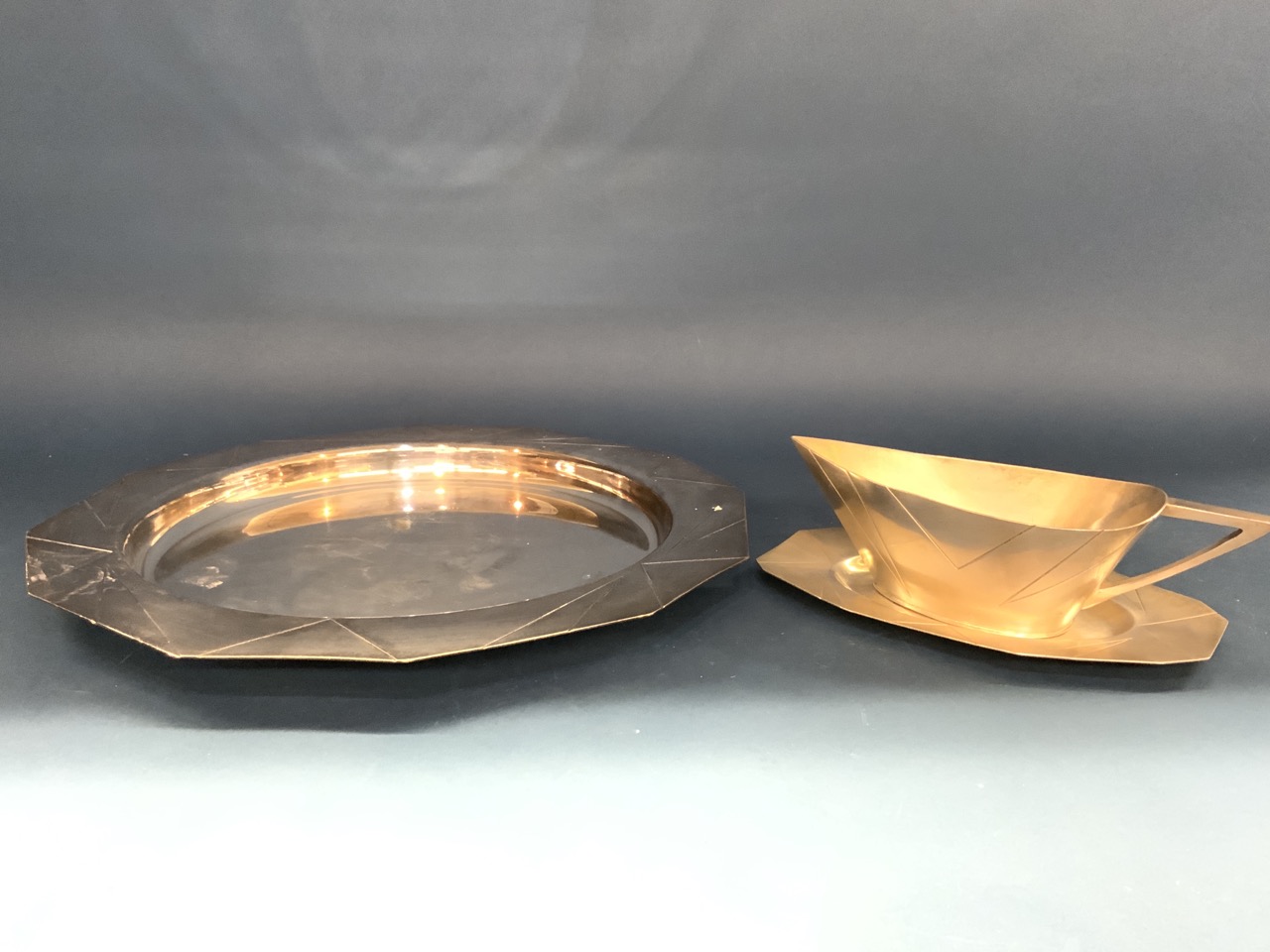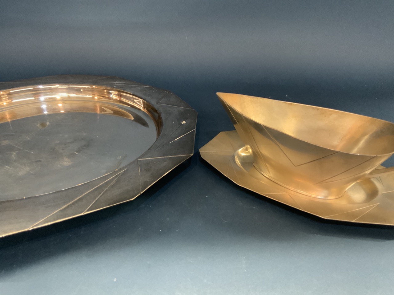 Bernard Rice Sons Silver plated tray 14" d and gravy boat with underplate 3" X 9"