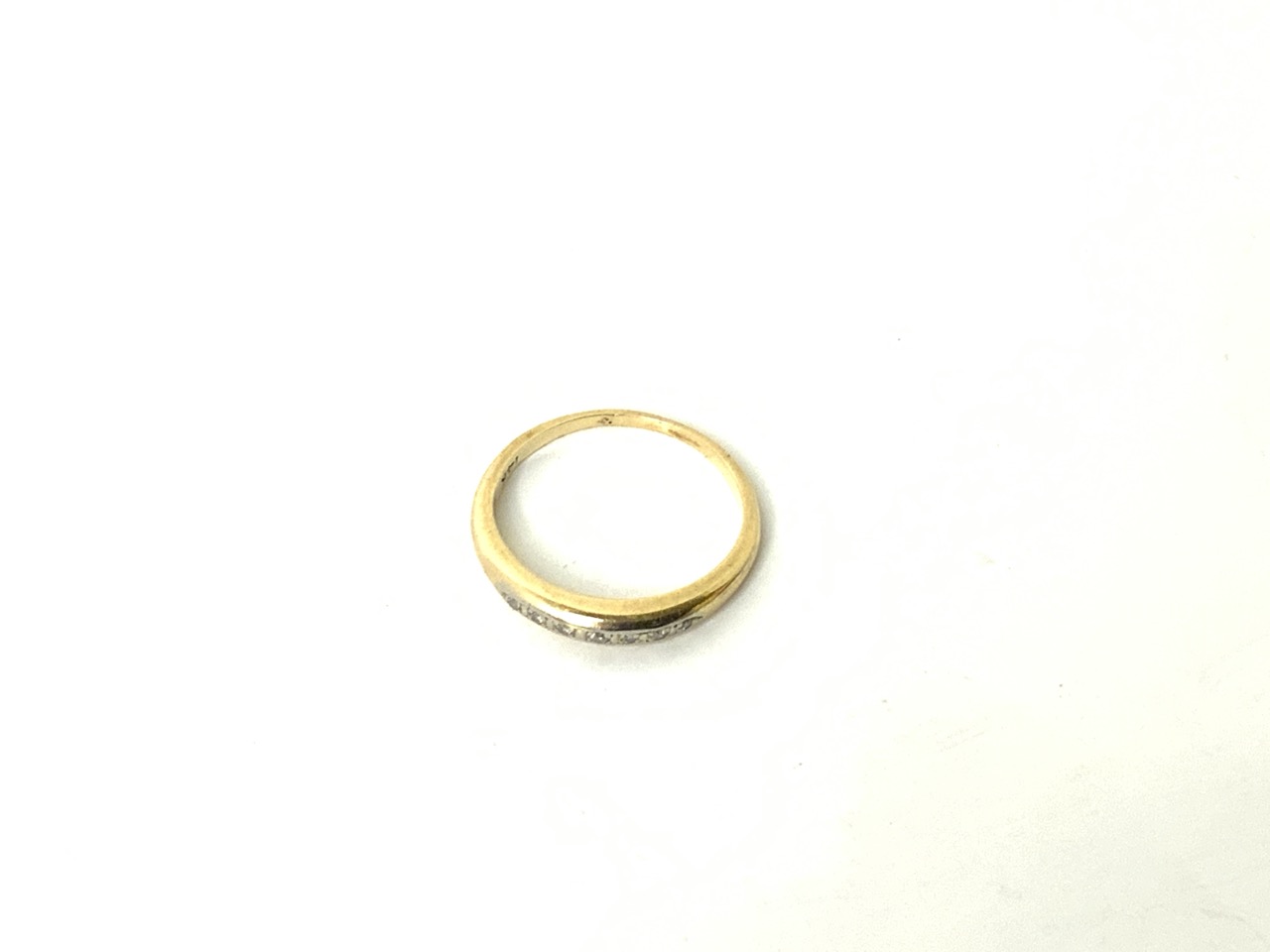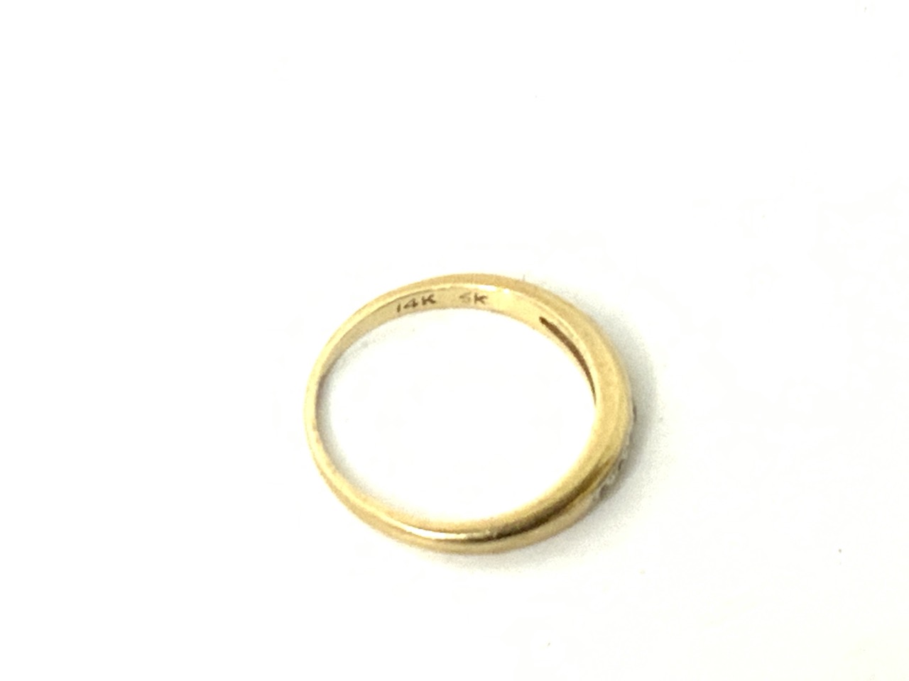 14k gold diamond band ring.