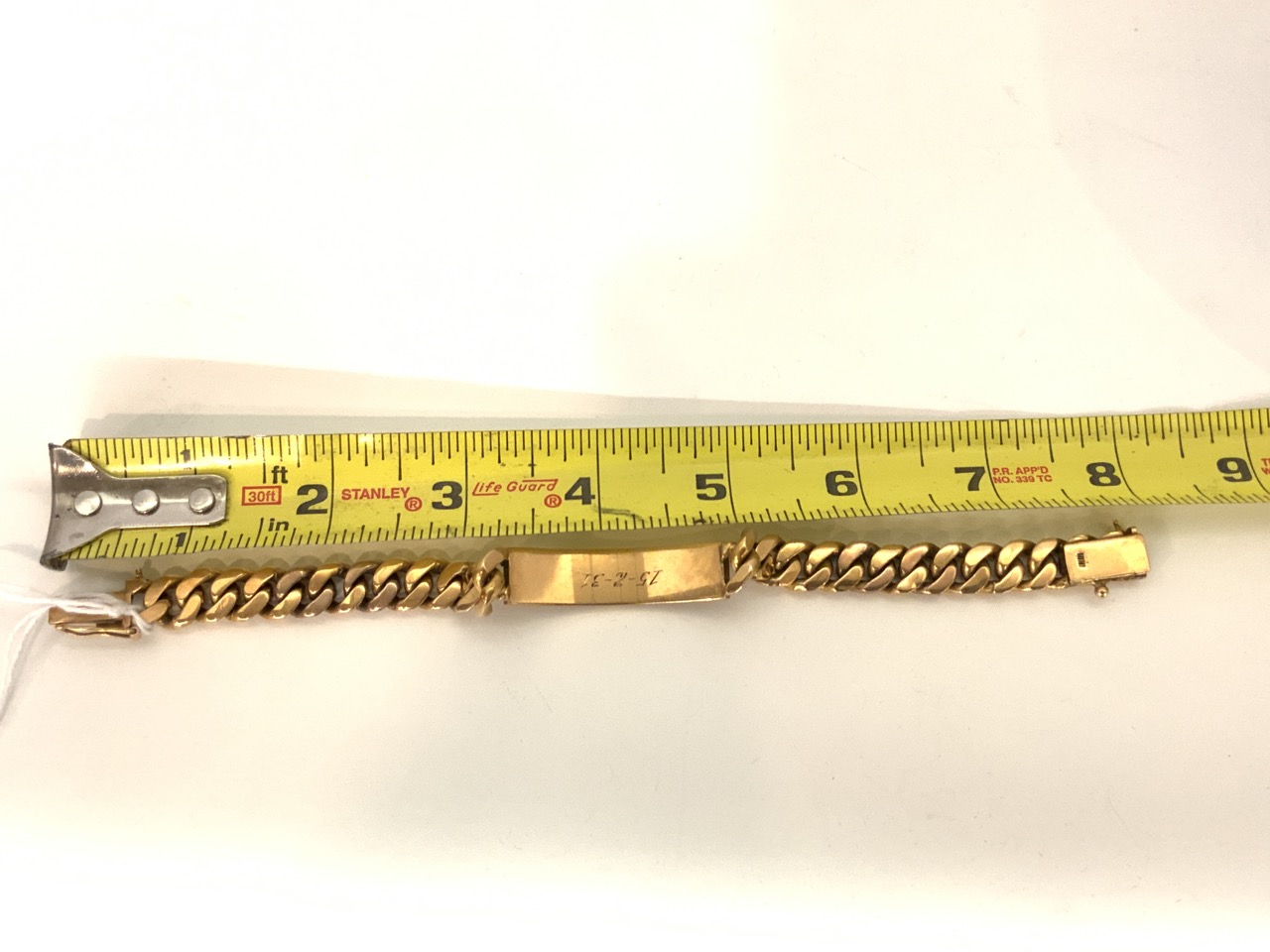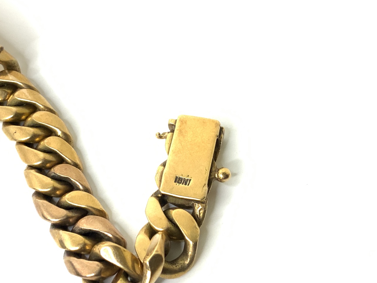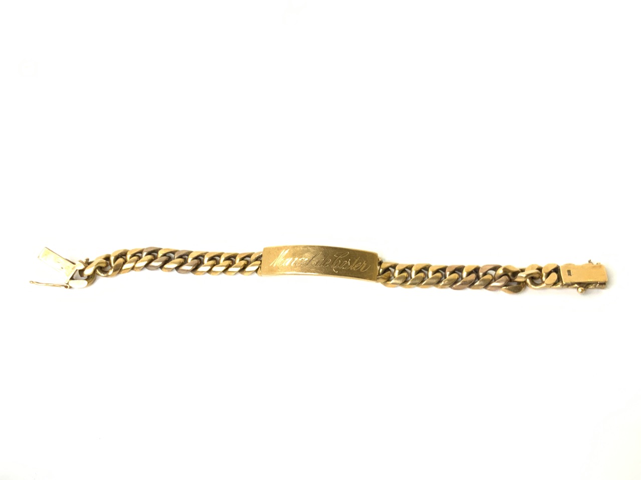 Heavy 18k yellow gold Cuban link ID bracelet.