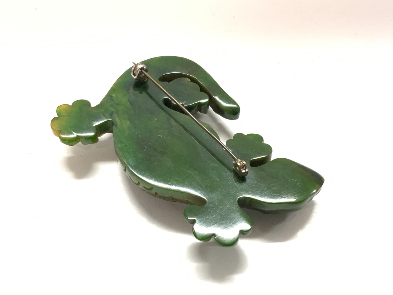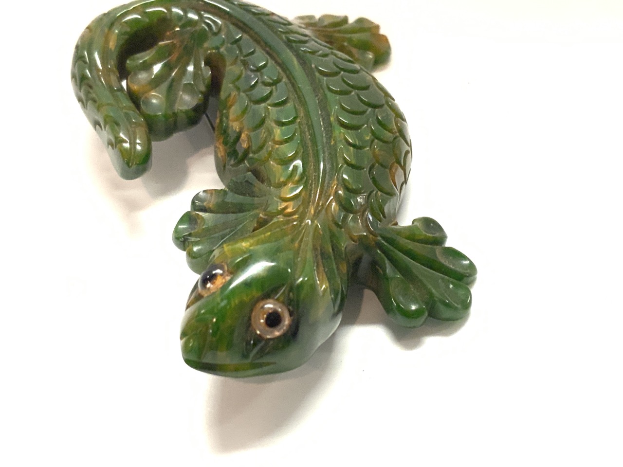 Carved bakelite Lizard pin.