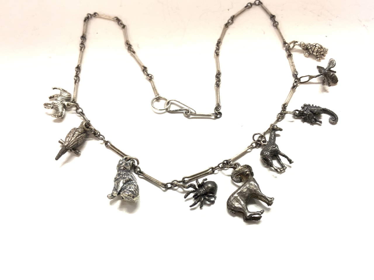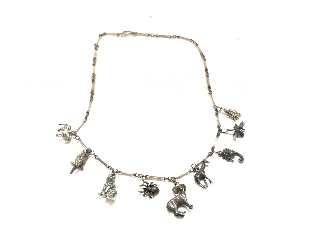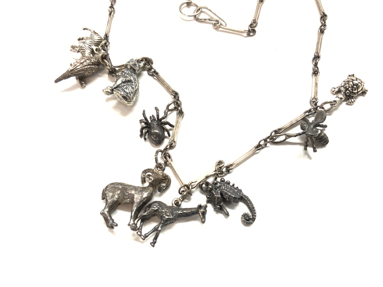 A sterling silver animal charm necklace.