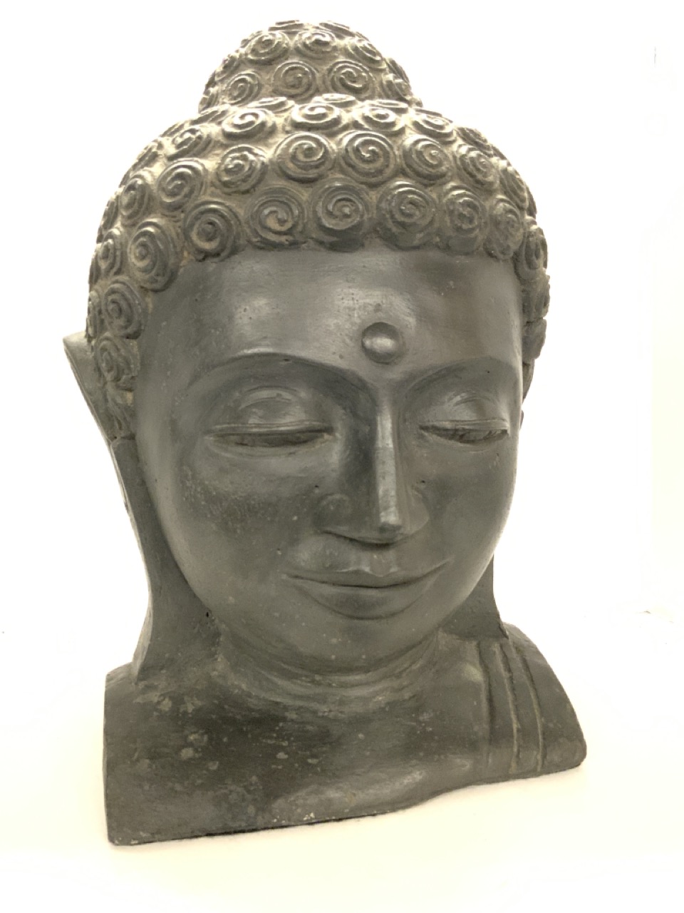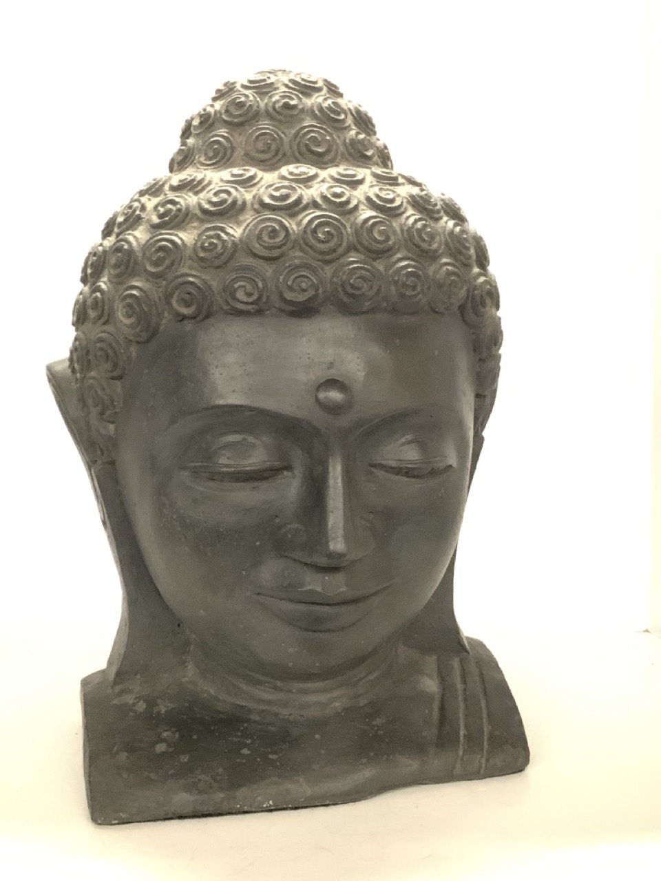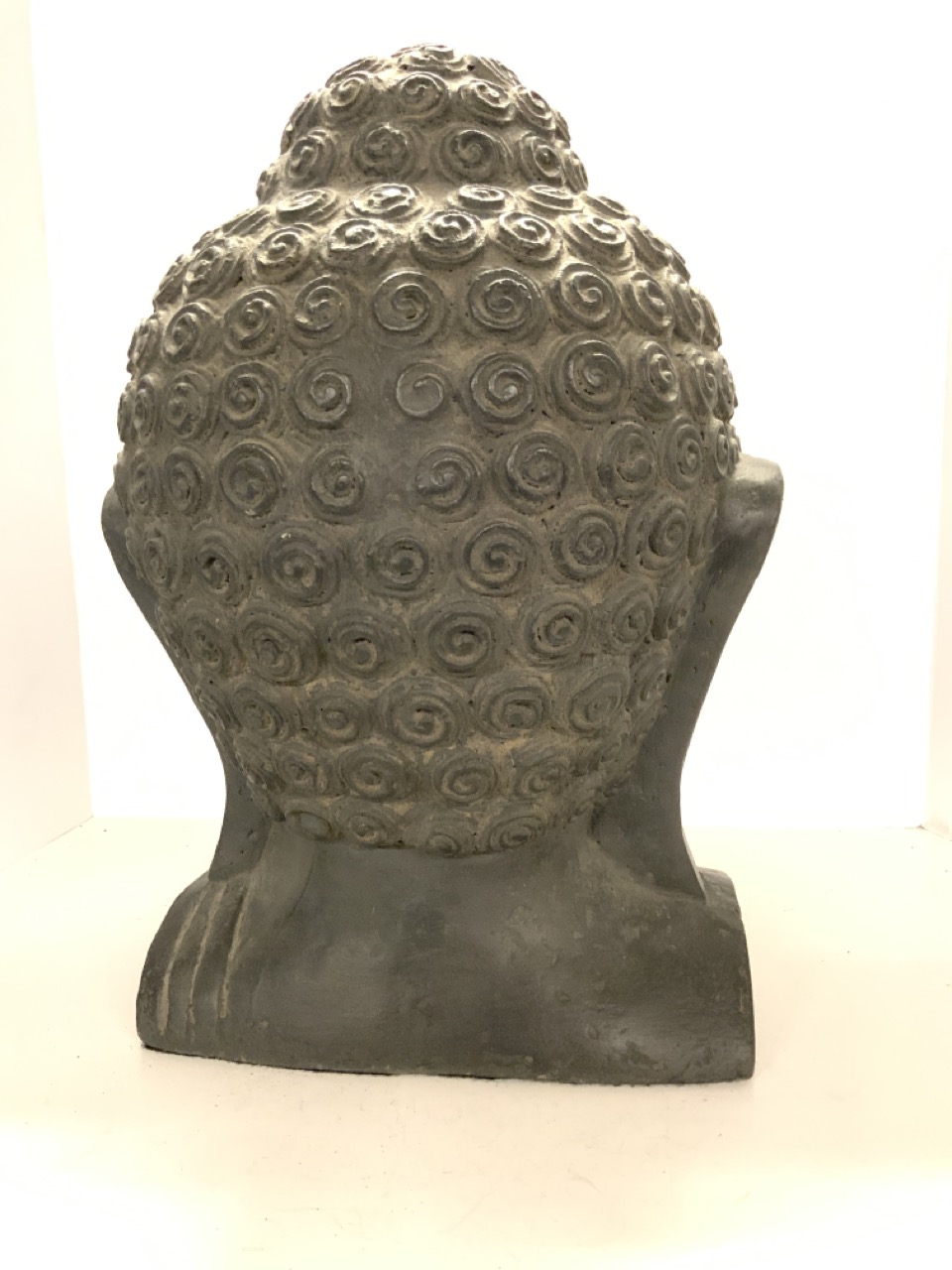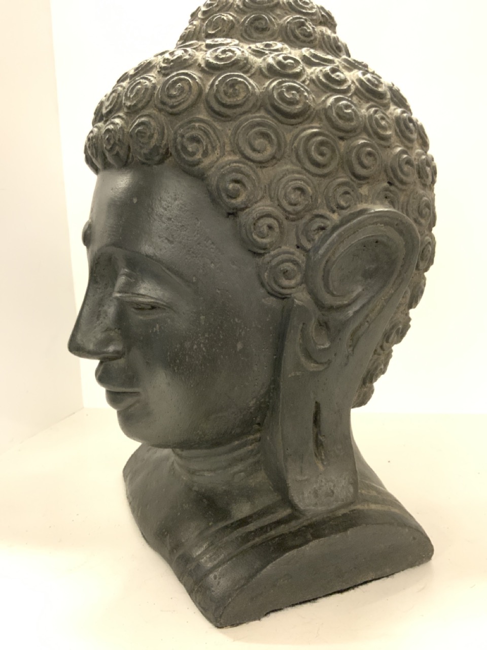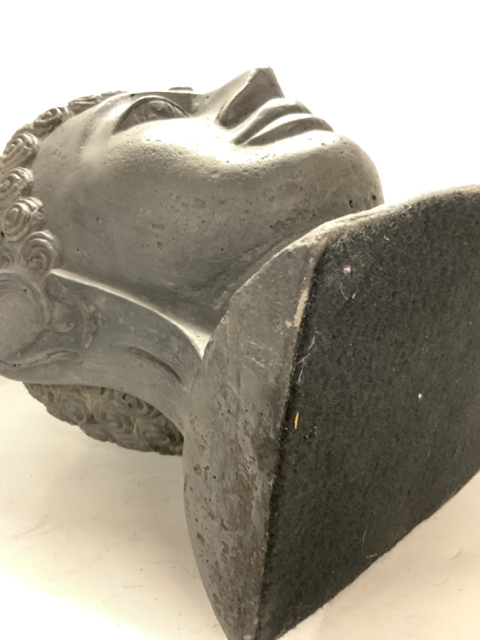 A Buddha head bust statue. Made of heavy molded plaster material.