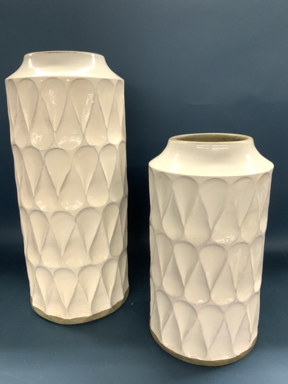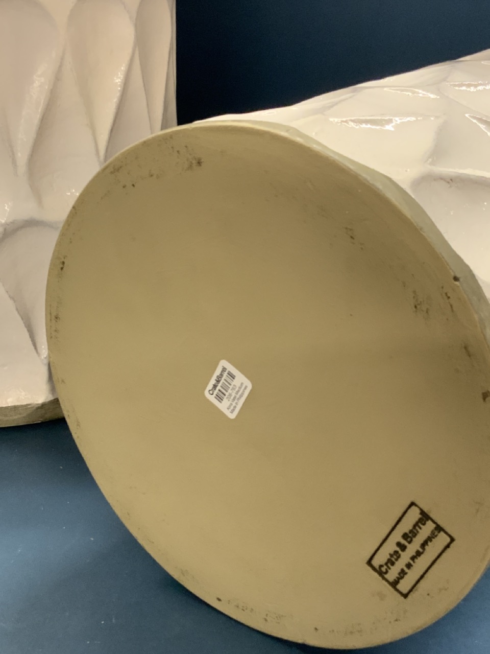 Decorative Crate And Barrel Graduated White Pottery Vases.