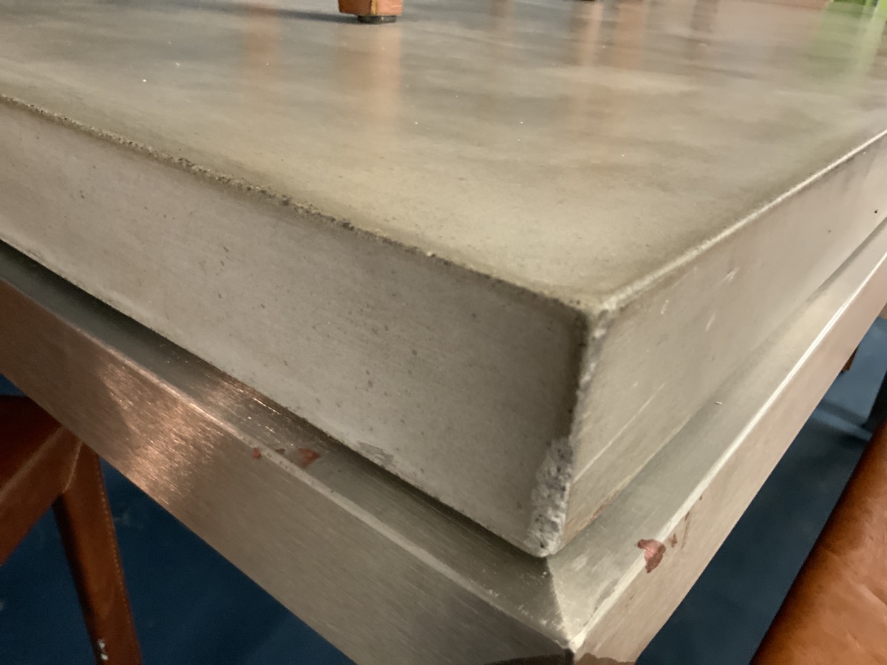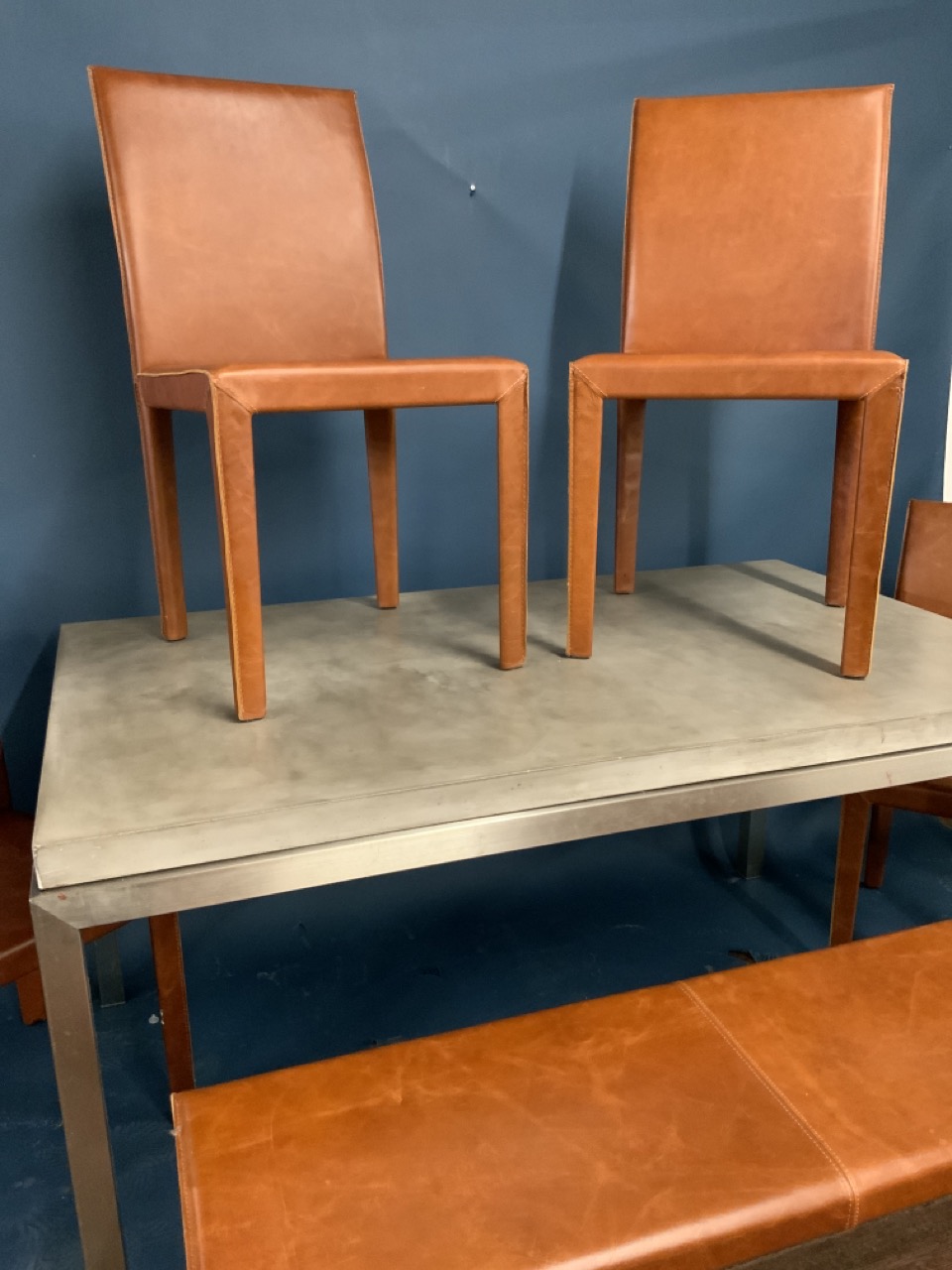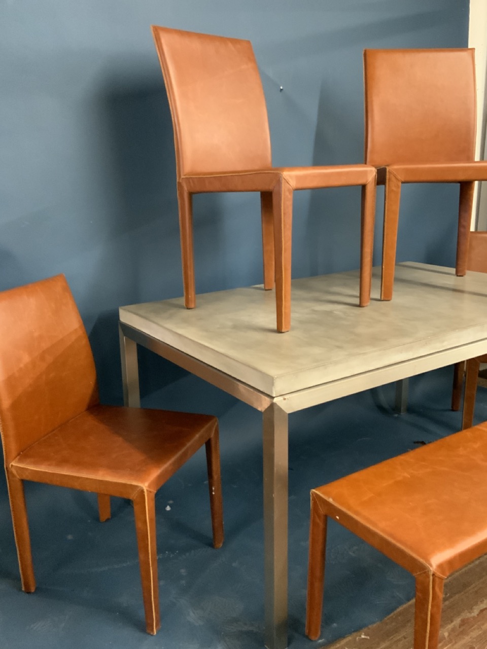 Designer Maria Yee set of four chairs and matching bench seat accompanied with a concrete top dining table.
