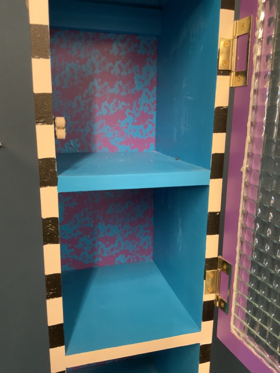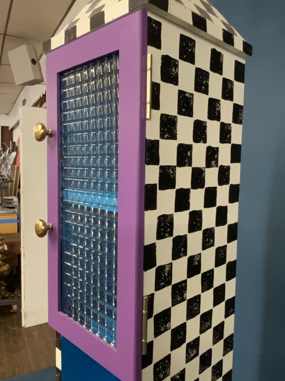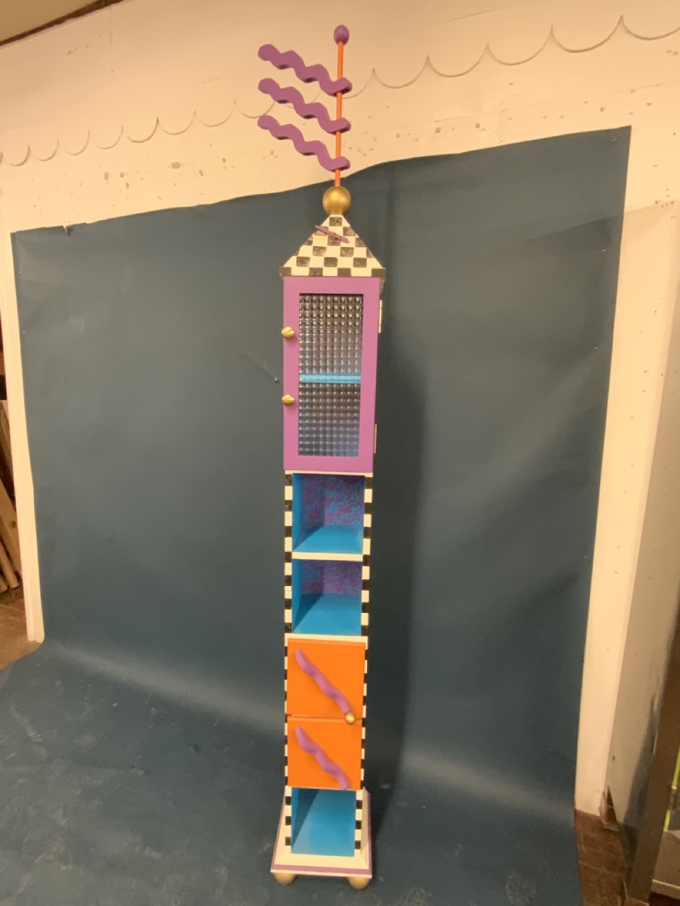 1990's Bleader Pop Art Painted Storage Tower Cabinet.
