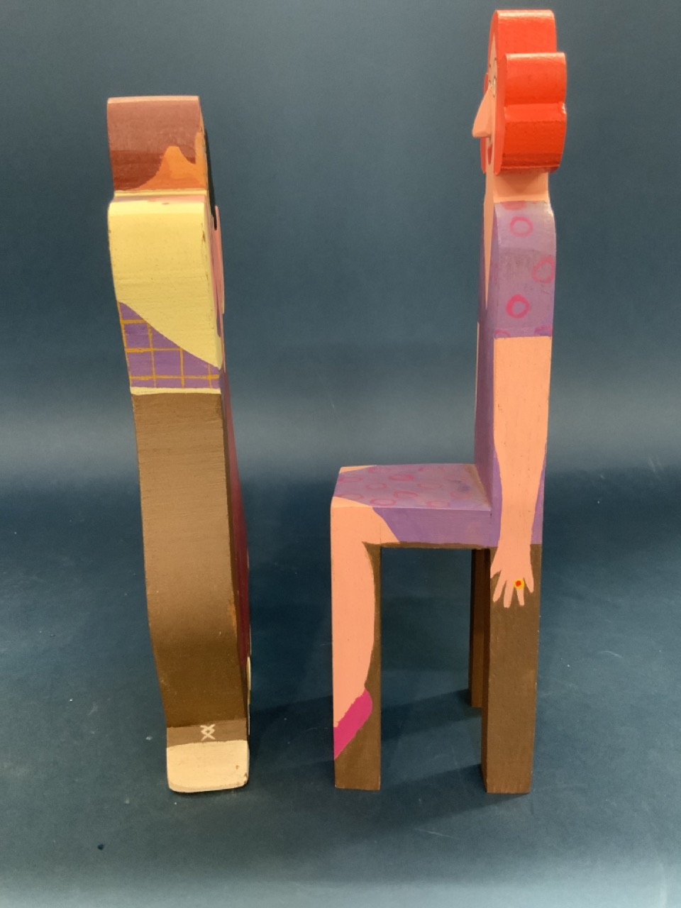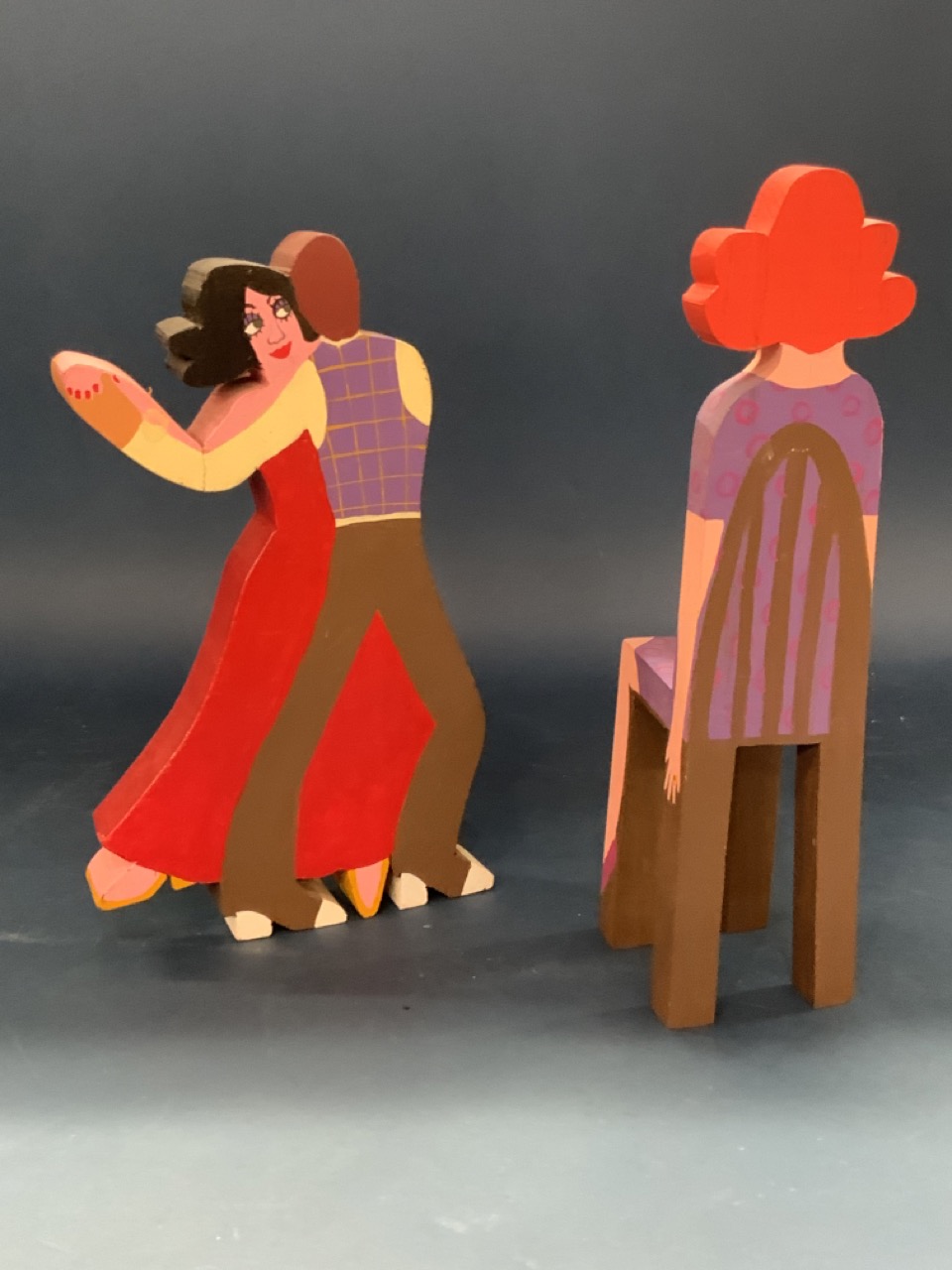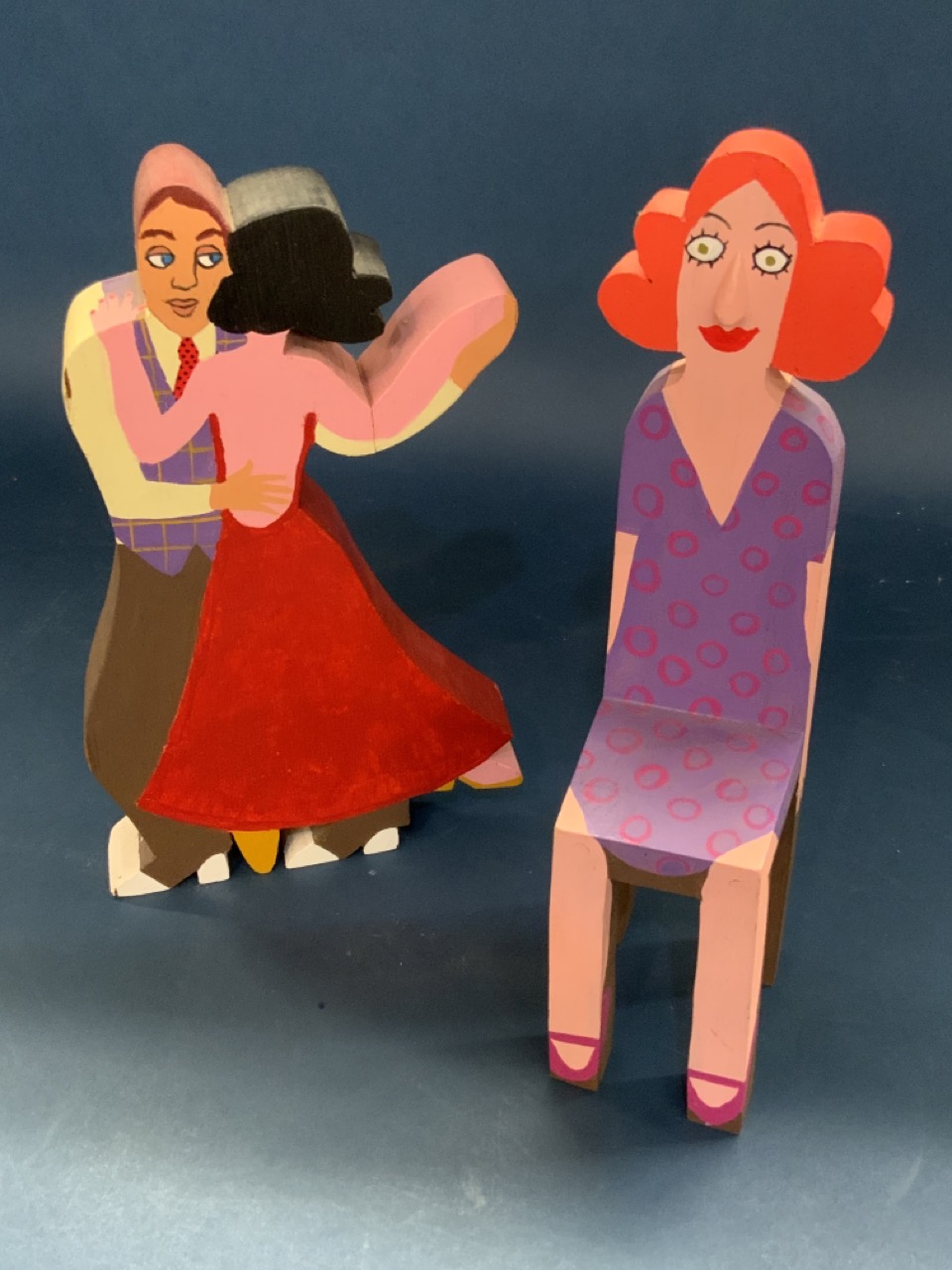 Two wood folk art sculpture figures. Unsigned.
