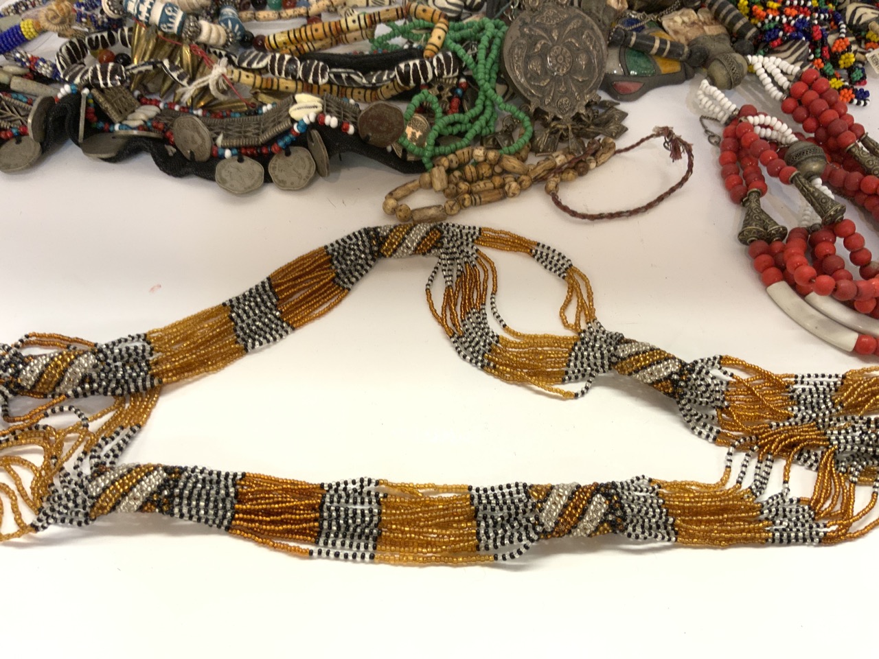 Provenance: Bergen Cty. Jewelry Collector's Estate. Many Purchased 1960-'s to 90's. Mostly show and antique shop purchases. An extensive collection focusing hard on African trade beads and tribal jewelry. Inspect each lot carefully.
