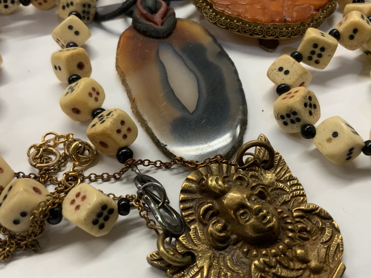 Assorted Jewelry lot, Glass beads, pendants, Carnelian carving, Angel pendant etc. Please see photograph preview.