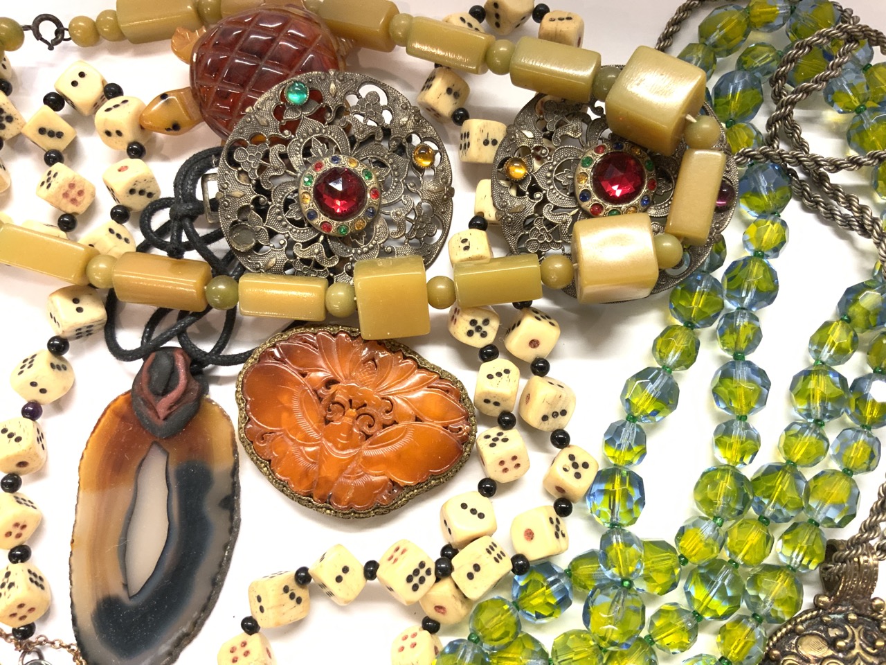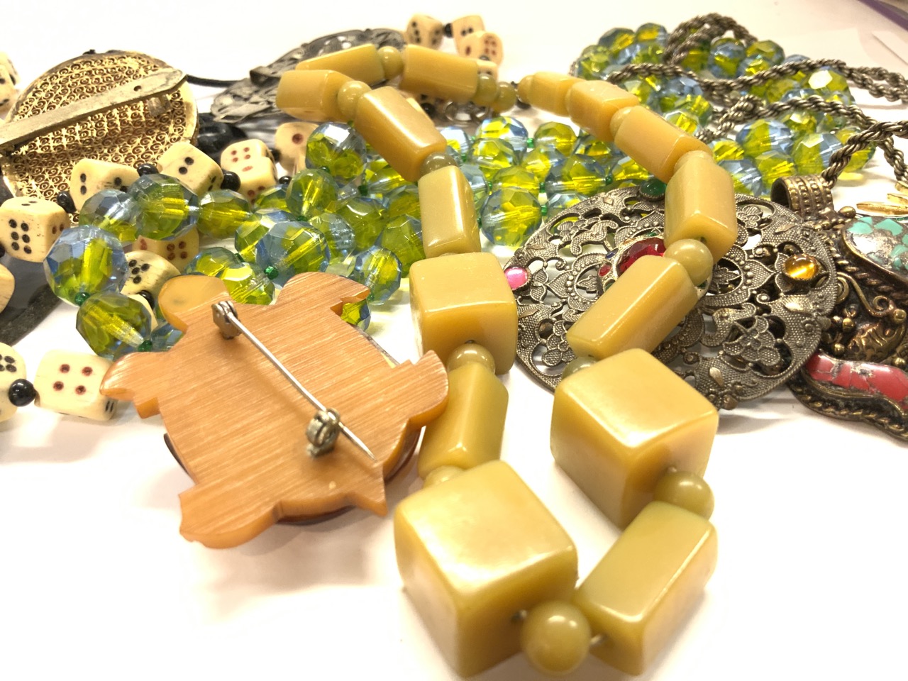 Provenance: Bergen Cty. Jewelry Collector's Estate. Many Purchased 1960-'s to 90's. Mostly show and antique shop purchases. An extensive collection focusing hard on African trade beads and tribal jewelry. Inspect each lot carefully.