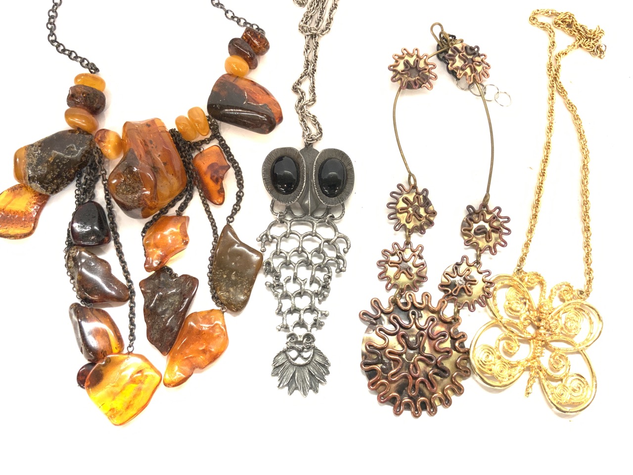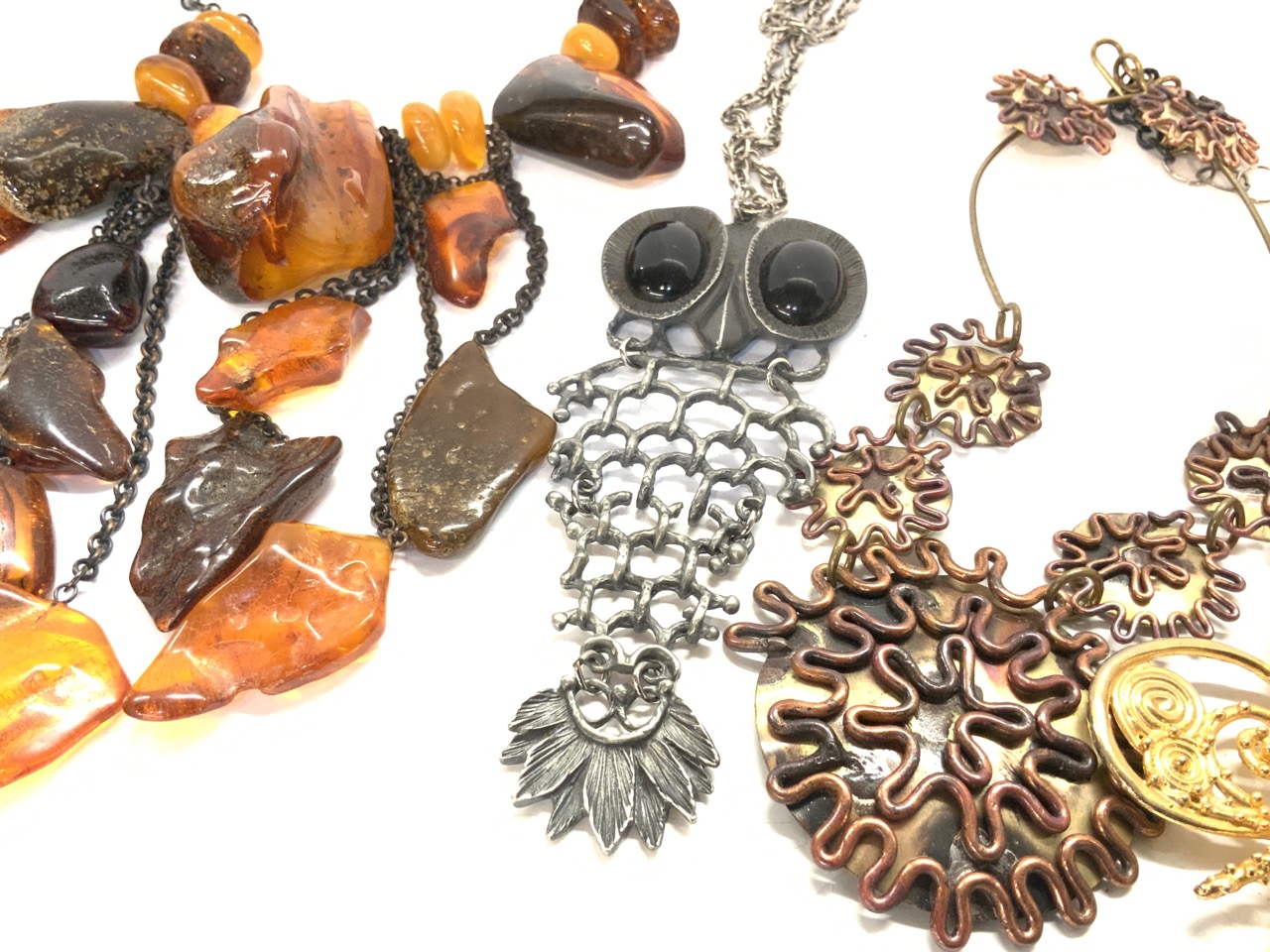 Assorted Jewelry Group. 1960's Chunky Pendant Necklaces etc.
