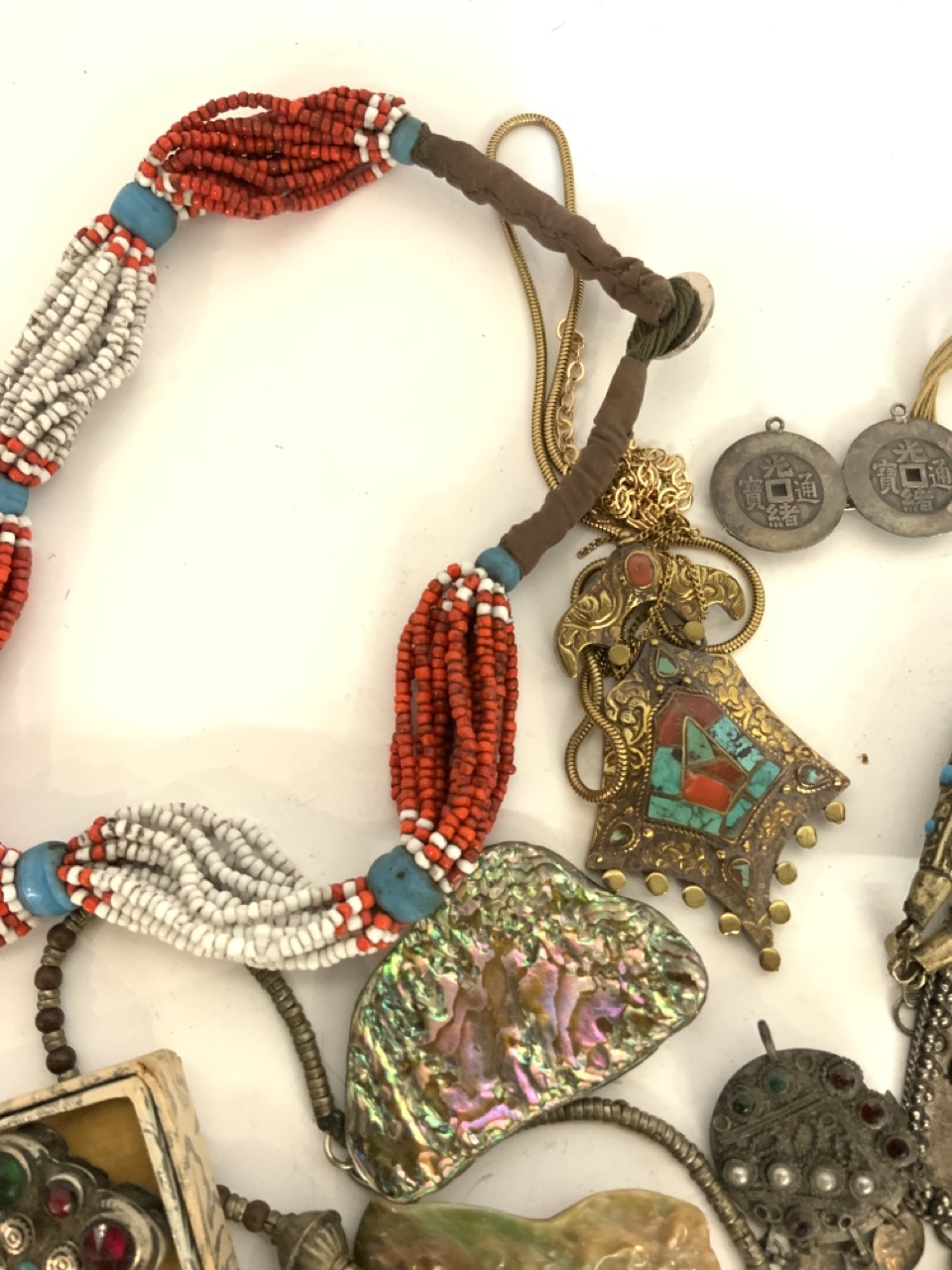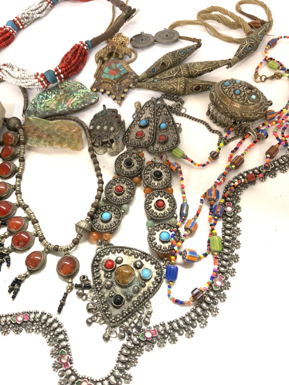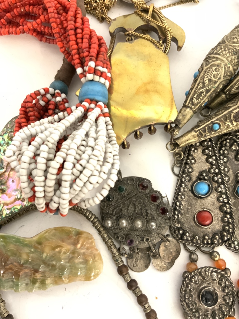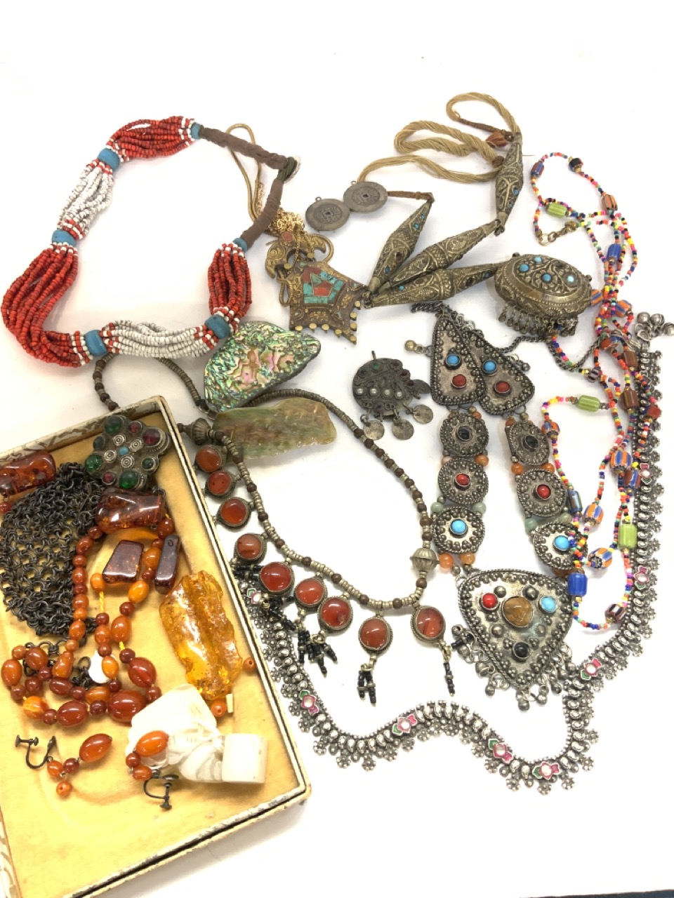 Assorted jewelry lot with amber, African jewelry, Persian etc. As seen in photograph preview.