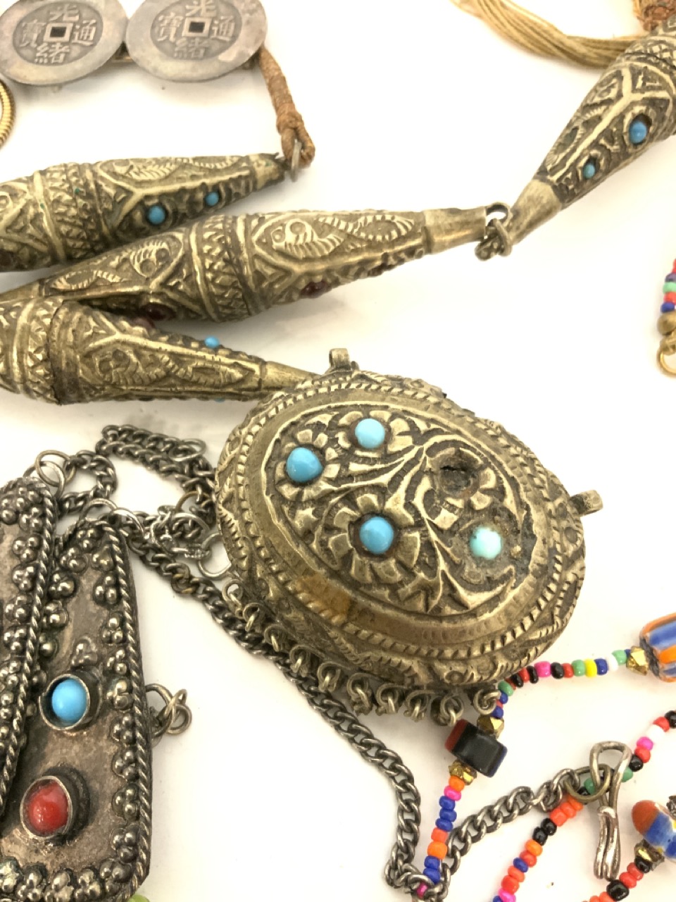 Provenance: Bergen Cty. Jewelry Collector's Estate. Many Purchased 1960-'s to 90's. Mostly show and antique shop purchases. An extensive collection focusing hard on African trade beads and tribal jewelry. Inspect each lot carefully.
