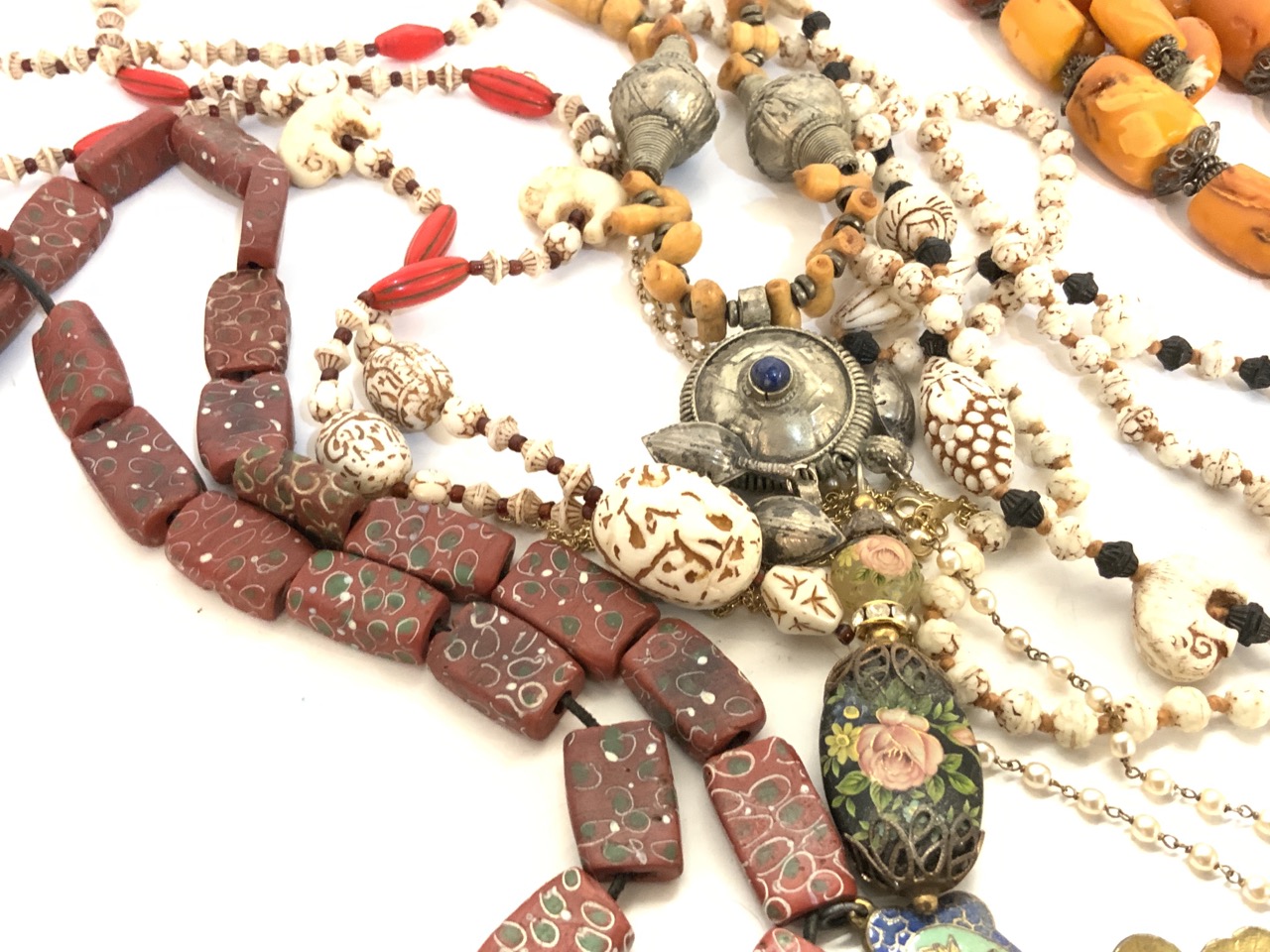 Provenance: Bergen Cty. Jewelry Collector's Estate. Many Purchased 1960-'s to 90's. Mostly show and antique shop purchases. An extensive collection focusing hard on African trade beads and tribal jewelry. Inspect each lot carefully.