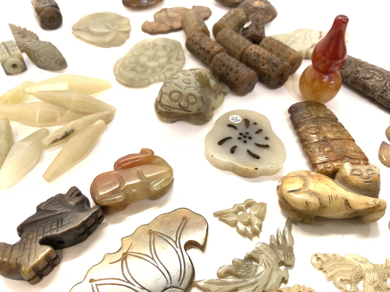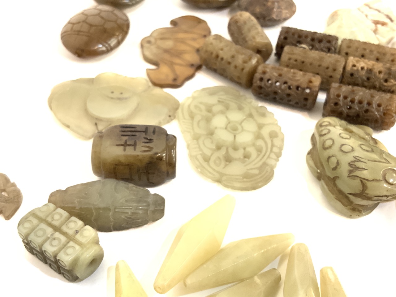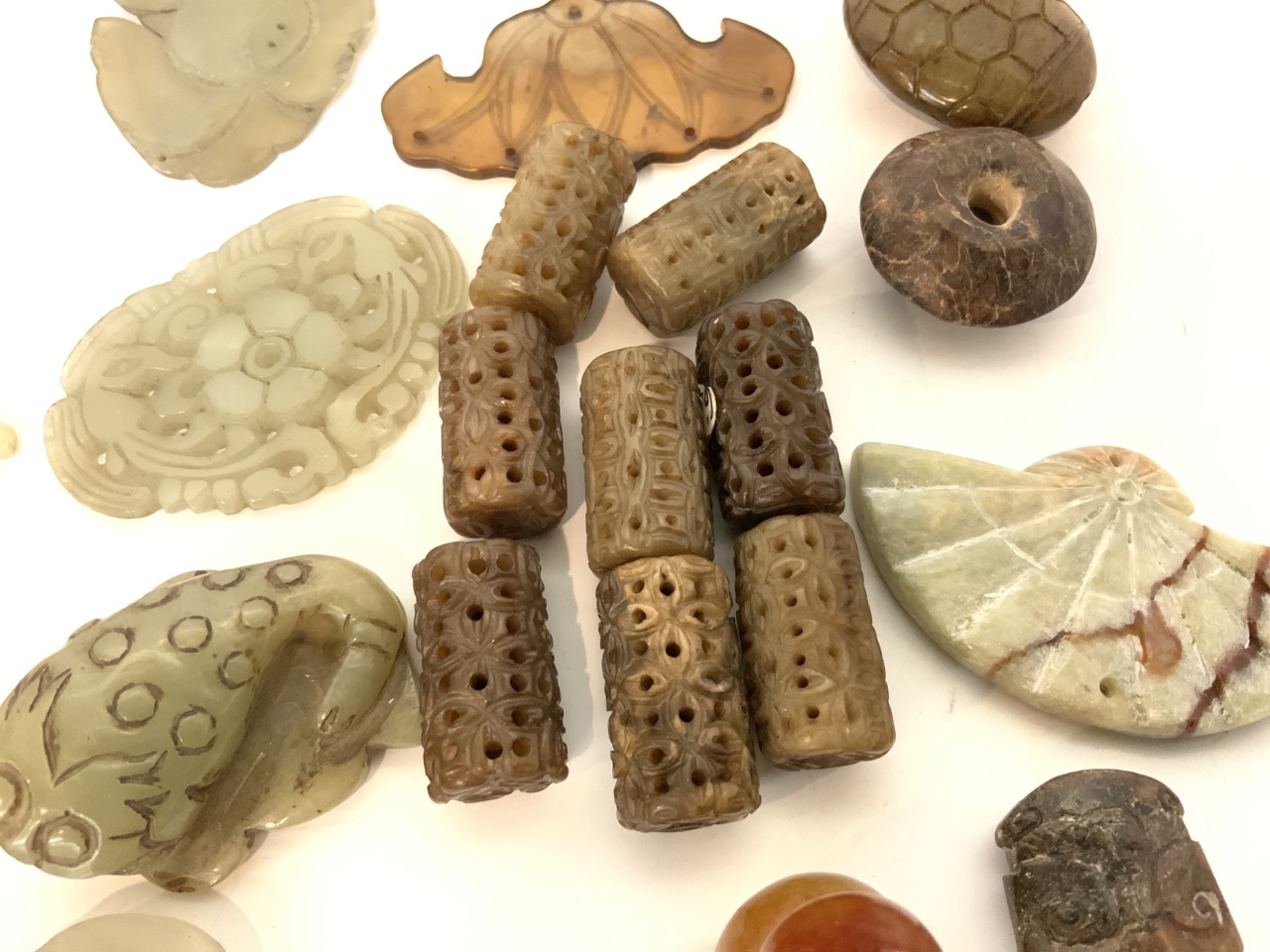 A Chinese group lot of assorted beads and other stones. As seen in photograph preview.