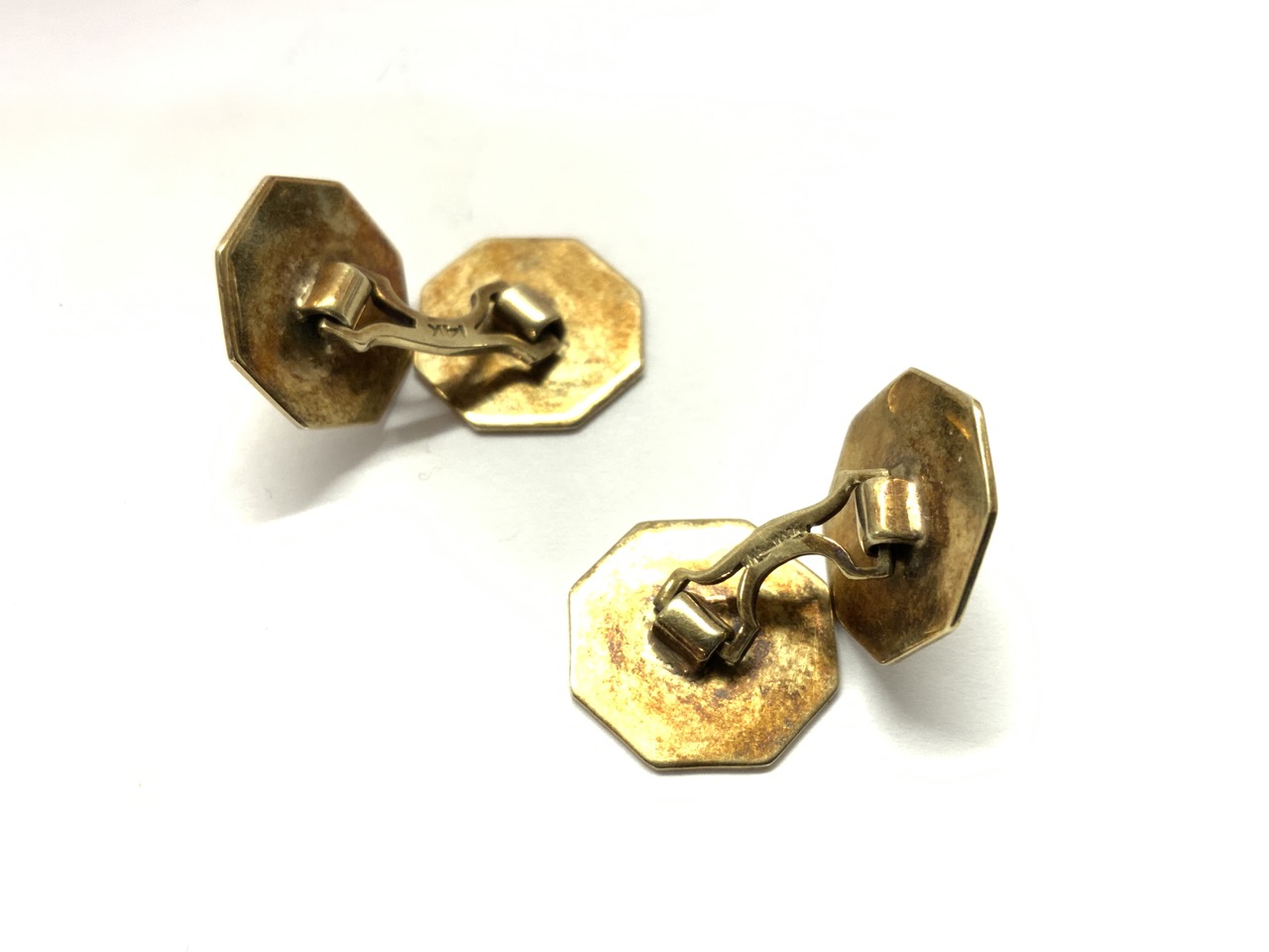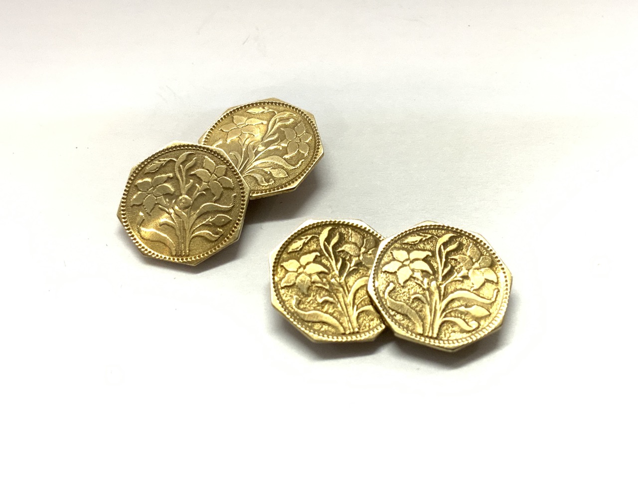 A pair of 14k yellow gold floral motif cufflinks.