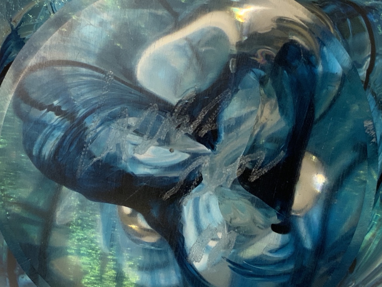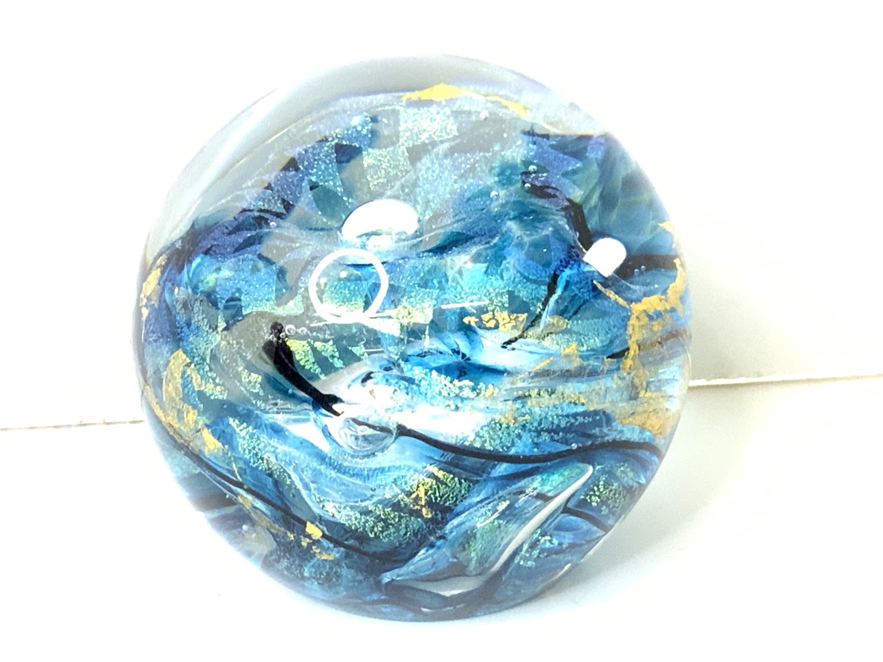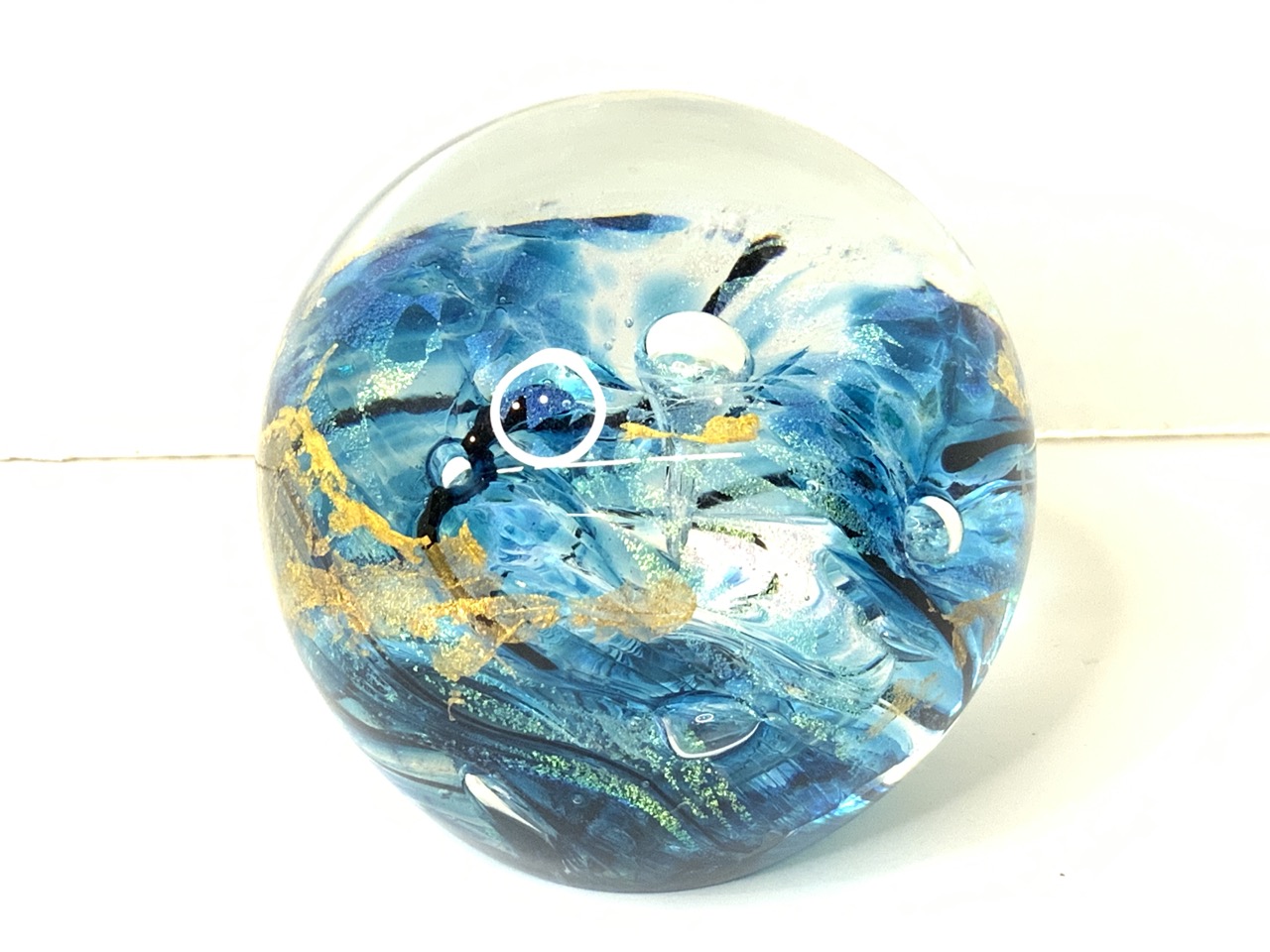 A studio art glass blue paperweight. Illegibly signed.