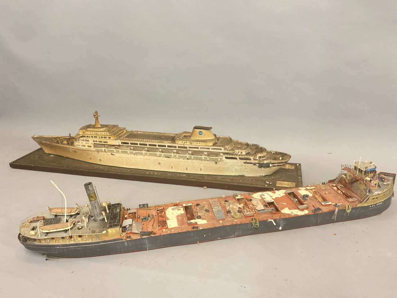 Vintage cruise ship model SS Oceanic and RT Hooker. Dimensions: 9” x 50 and 8” x 47” Condition Report: Very poor condition, parts or repair. Please see photograph preview or call.