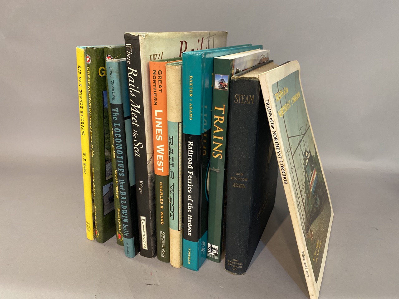 Eleven books related to history of trains, models and western frontier. As seen in photograph preview.