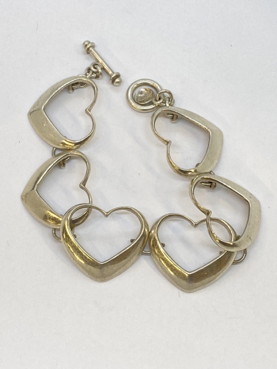 Sterling silver open heart bracelet. 7” length Total weight: 24.4 grams