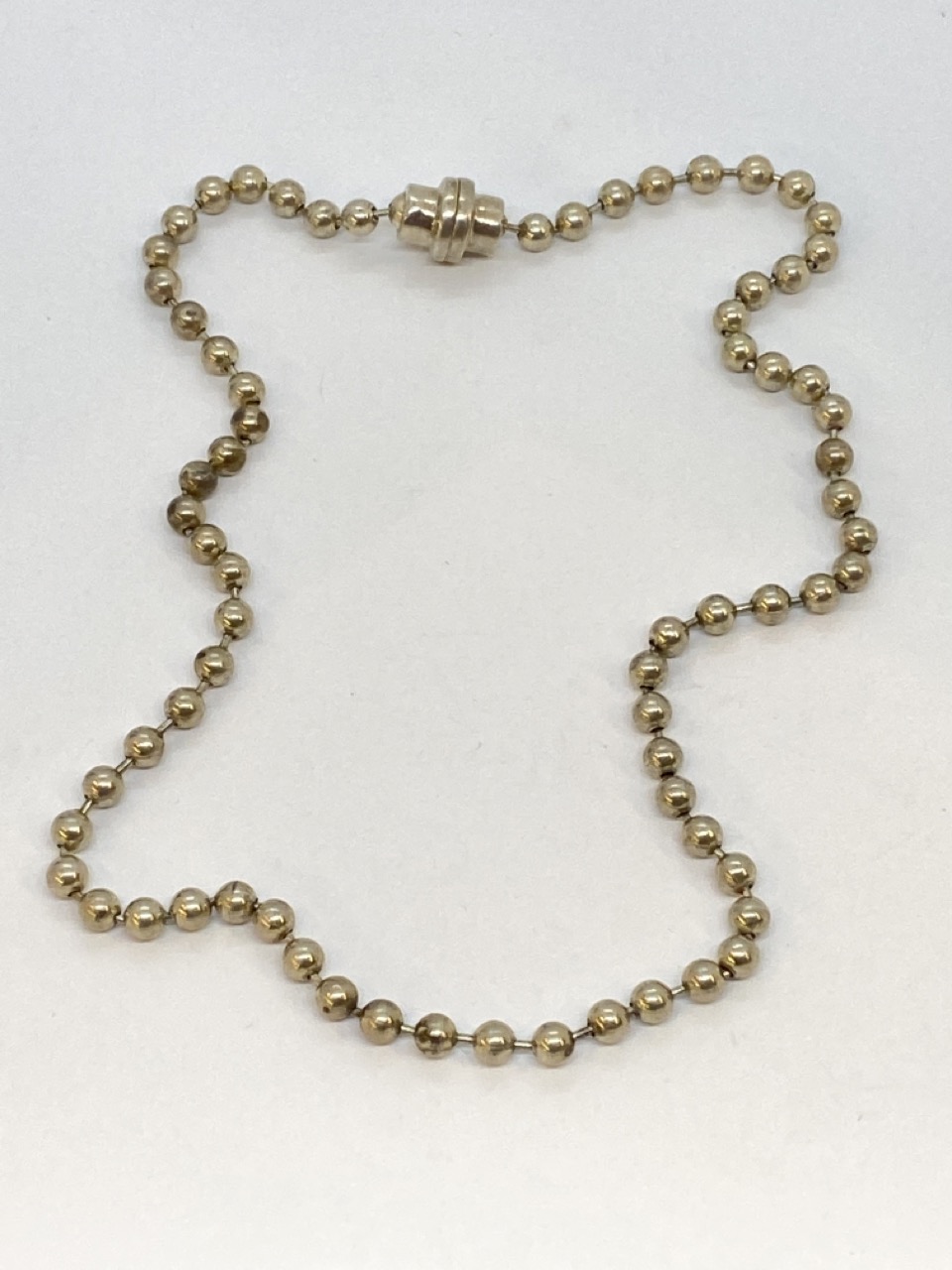 Sterling silver ball link necklace with screw clasp. 19" length. Total weight: 27.6 g