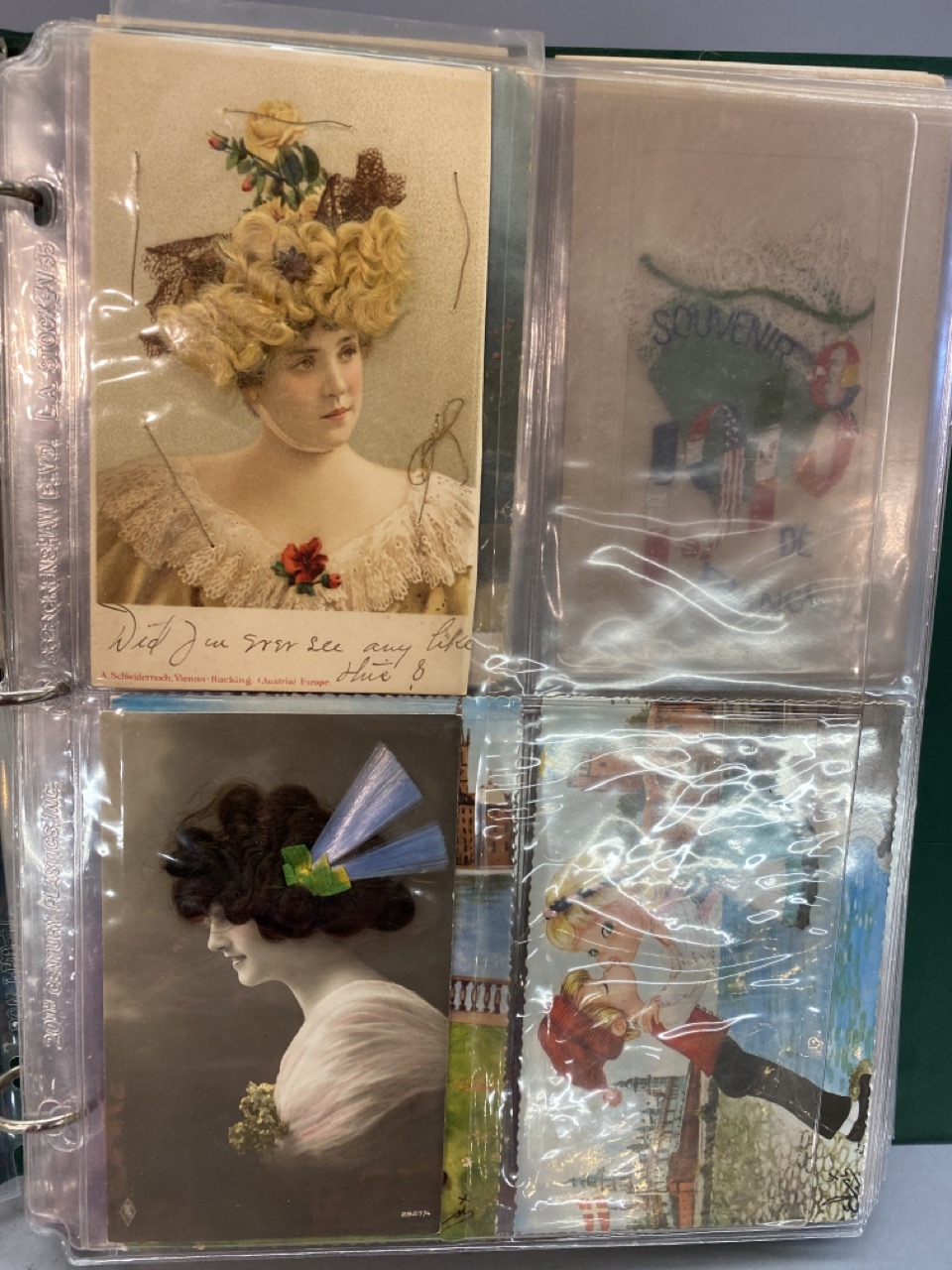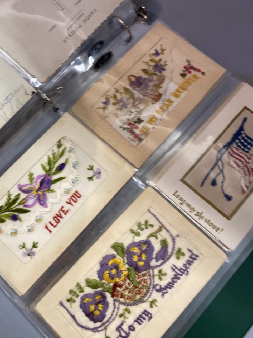 50+ Victorian postcards primarily with embroidery work ,human hair and three-dimensional effects etc.