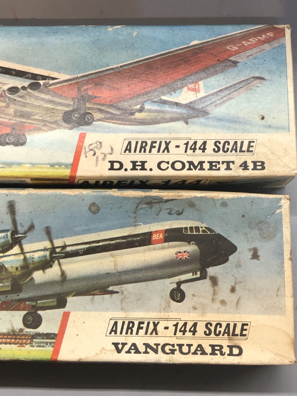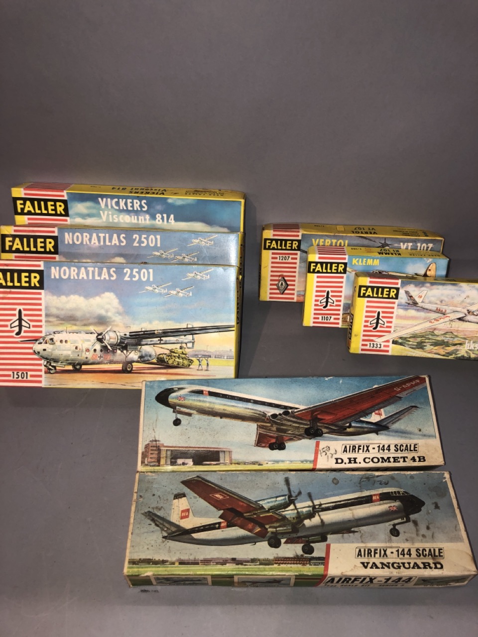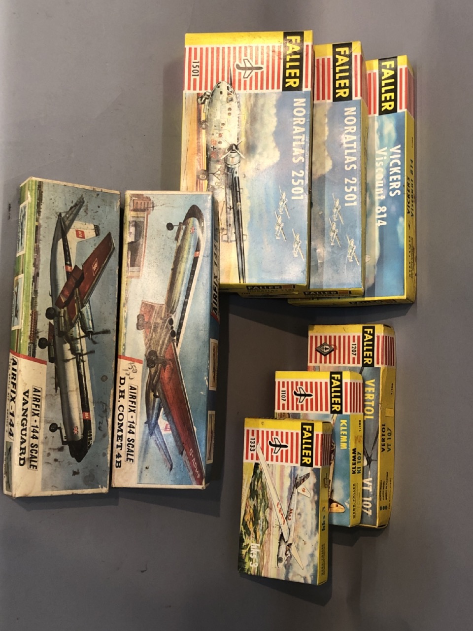 Faller and Airfix-144 Scale Plane Models. Faller models, 2501,814,1207,1107,1333. Vanguard and D.H. Comet 4B 7 pieces total.
