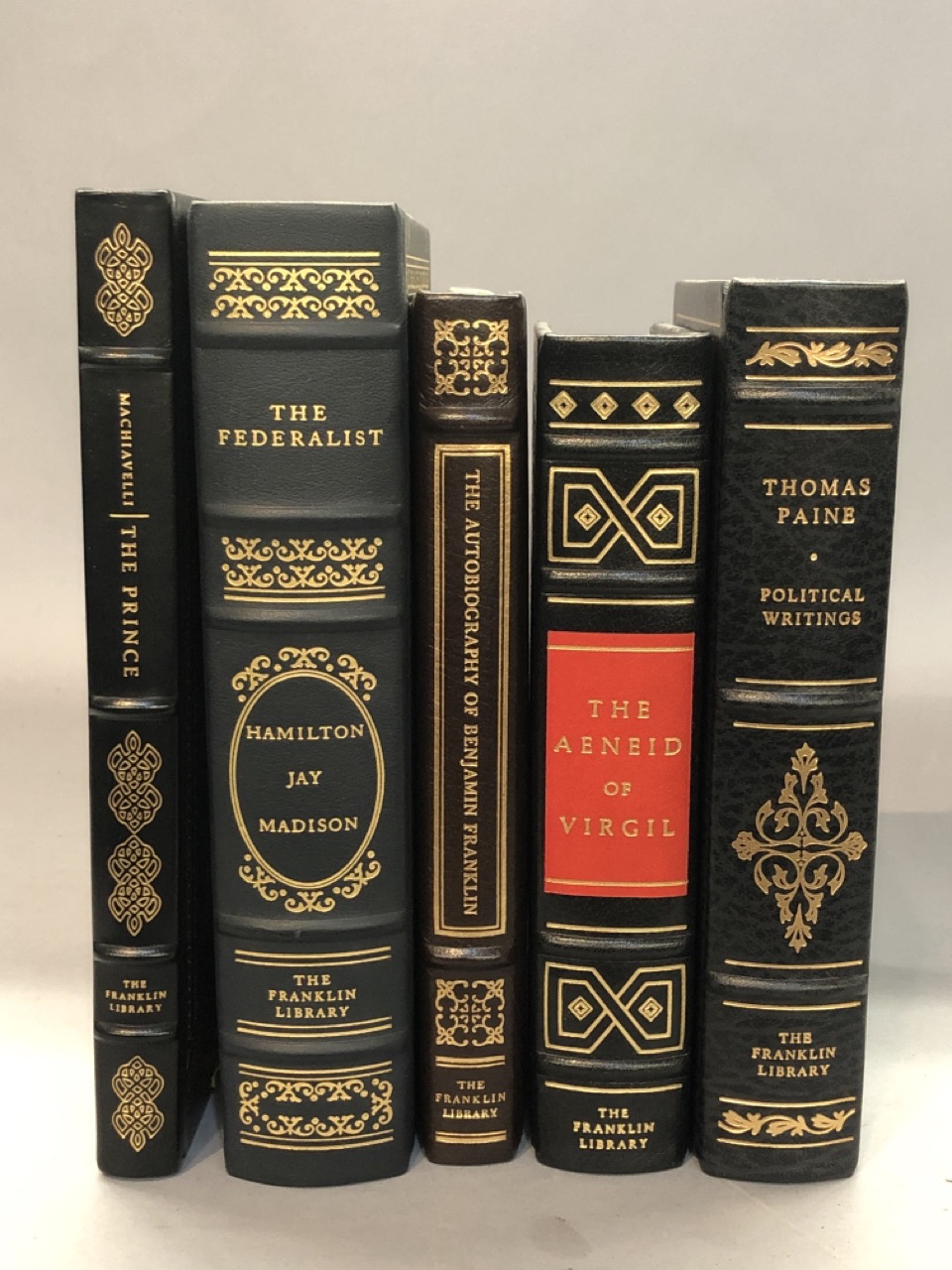 Five (5) leather bound Franklin Classics. As seen in photograph preview.