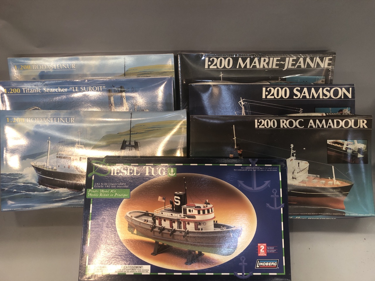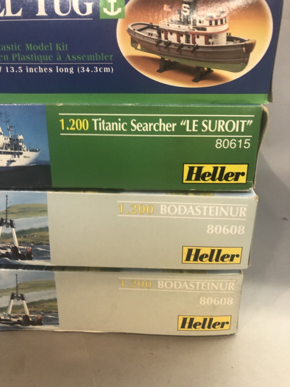Seven (7) Piece Heller ship models. Undone. Still in boxes.