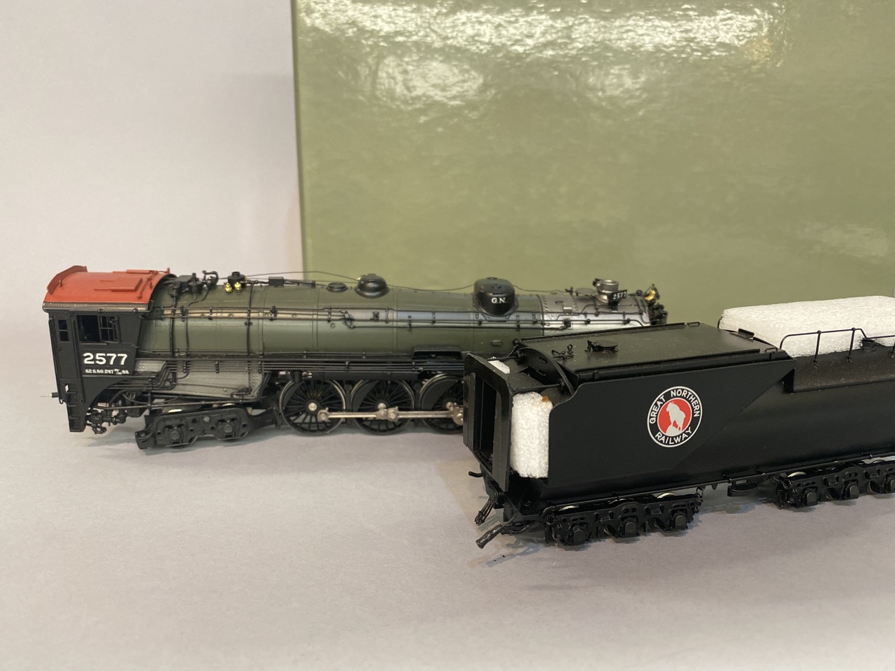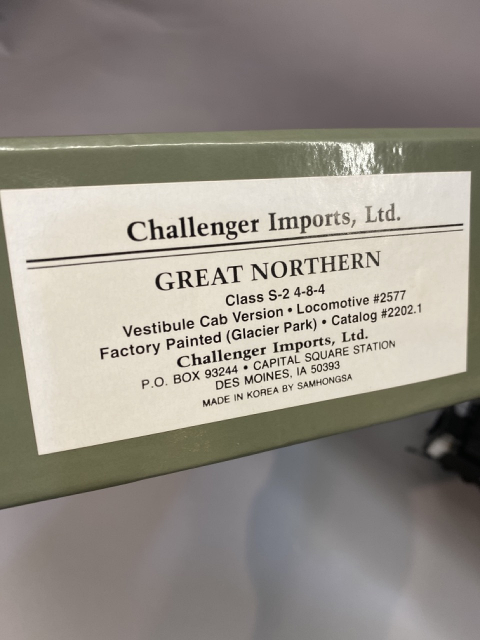 Challenger Imports Great Northern Railroad S-2 4-8-4 Vestibule Cab Version Loco #2577 Factory painted (Glacier Park) . Catalog 2202.1 . Samhongsa , Made in Korea with original box