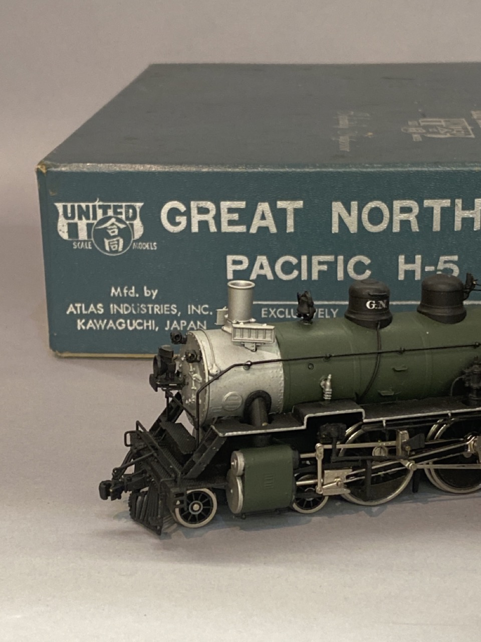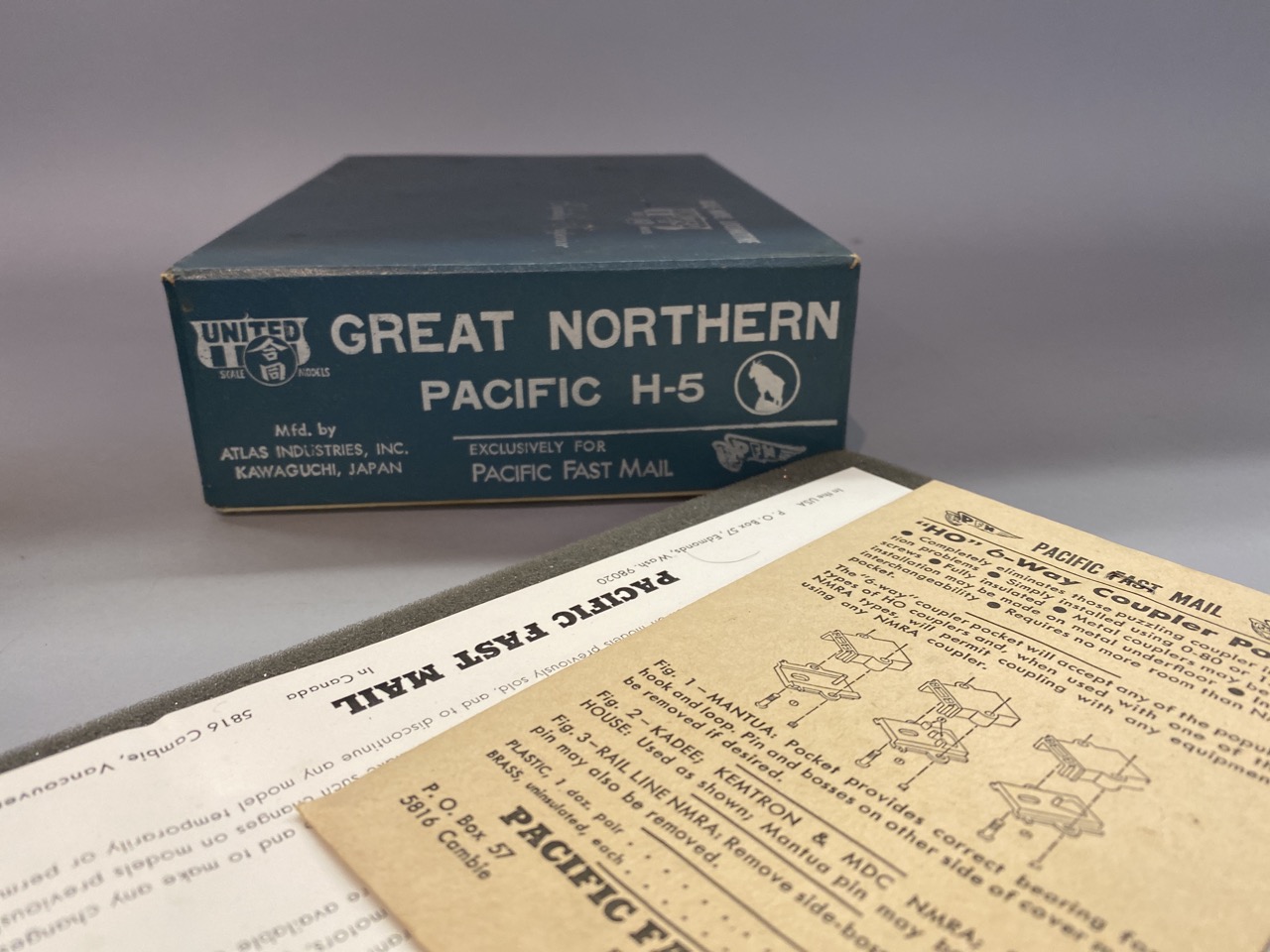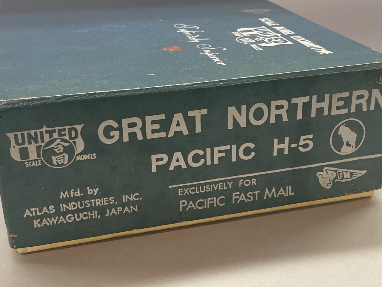 United Great Northern Pacific brass train exclusively for Pacific Fast Mail H-5. HO scale. With original box. Condition Report: No damage noted. Please see photograph preview or call.