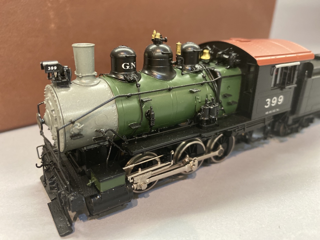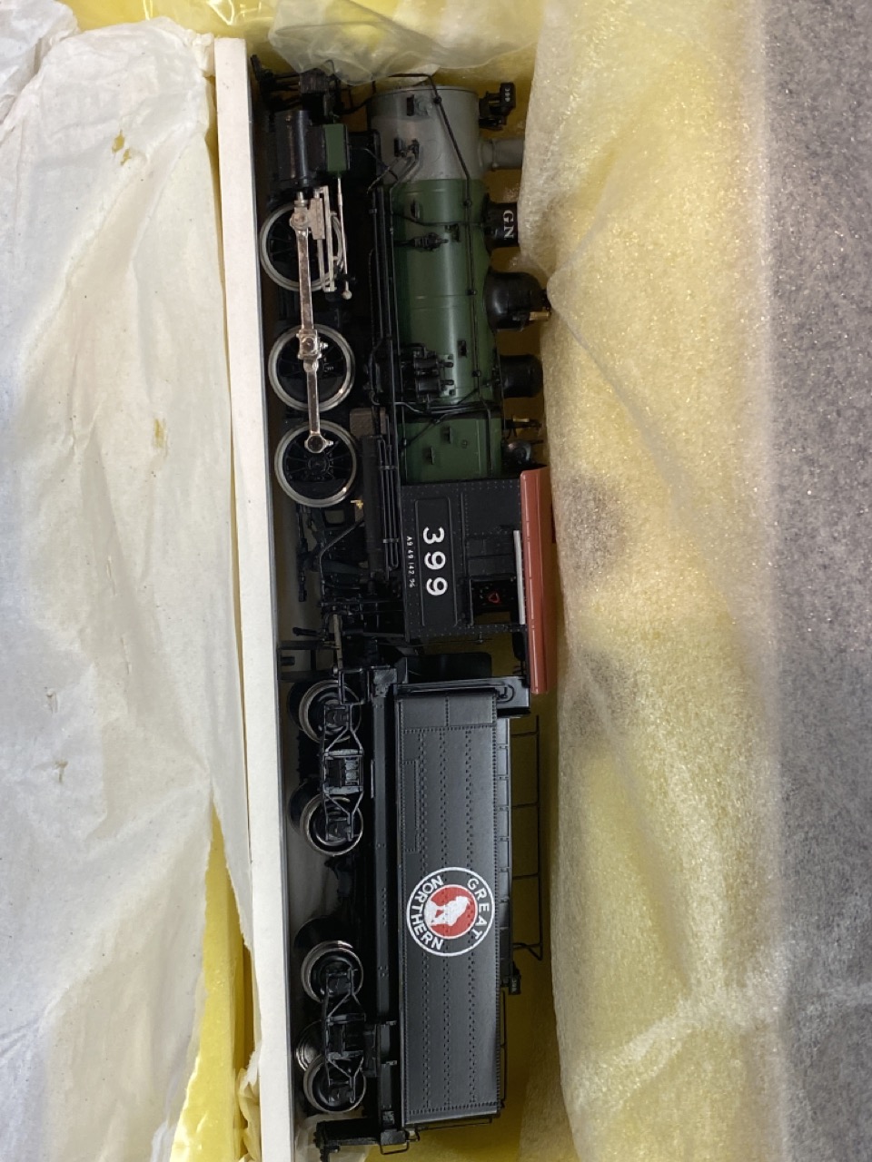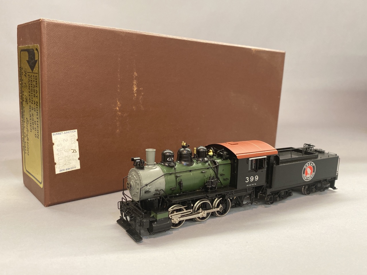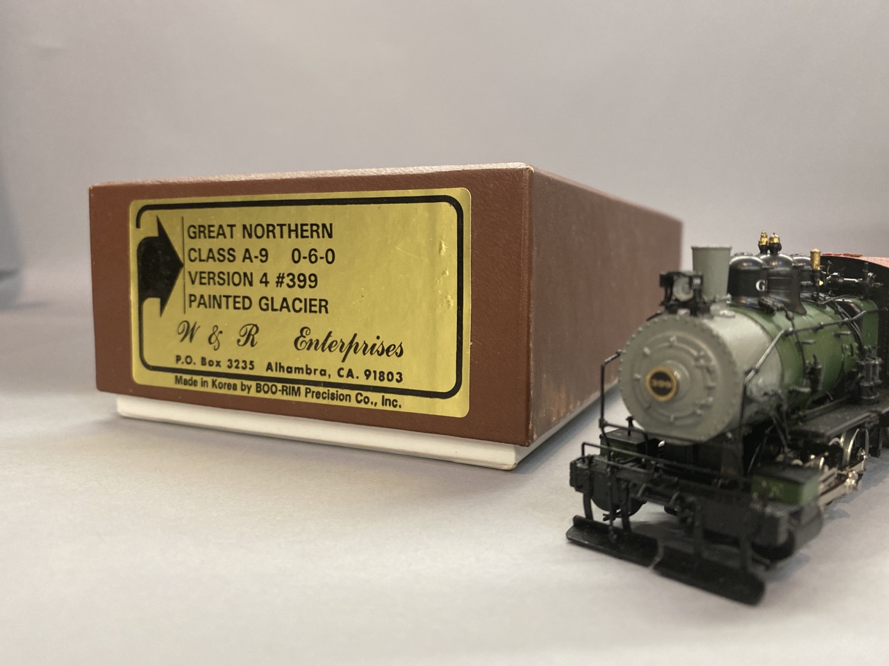 W&R Enterprises brass HO Locomotive train and tender Great Northern A-9 0-6-0 Version 4 #399 painted Glacier. Original box, Made by Boo Rin,Korea.