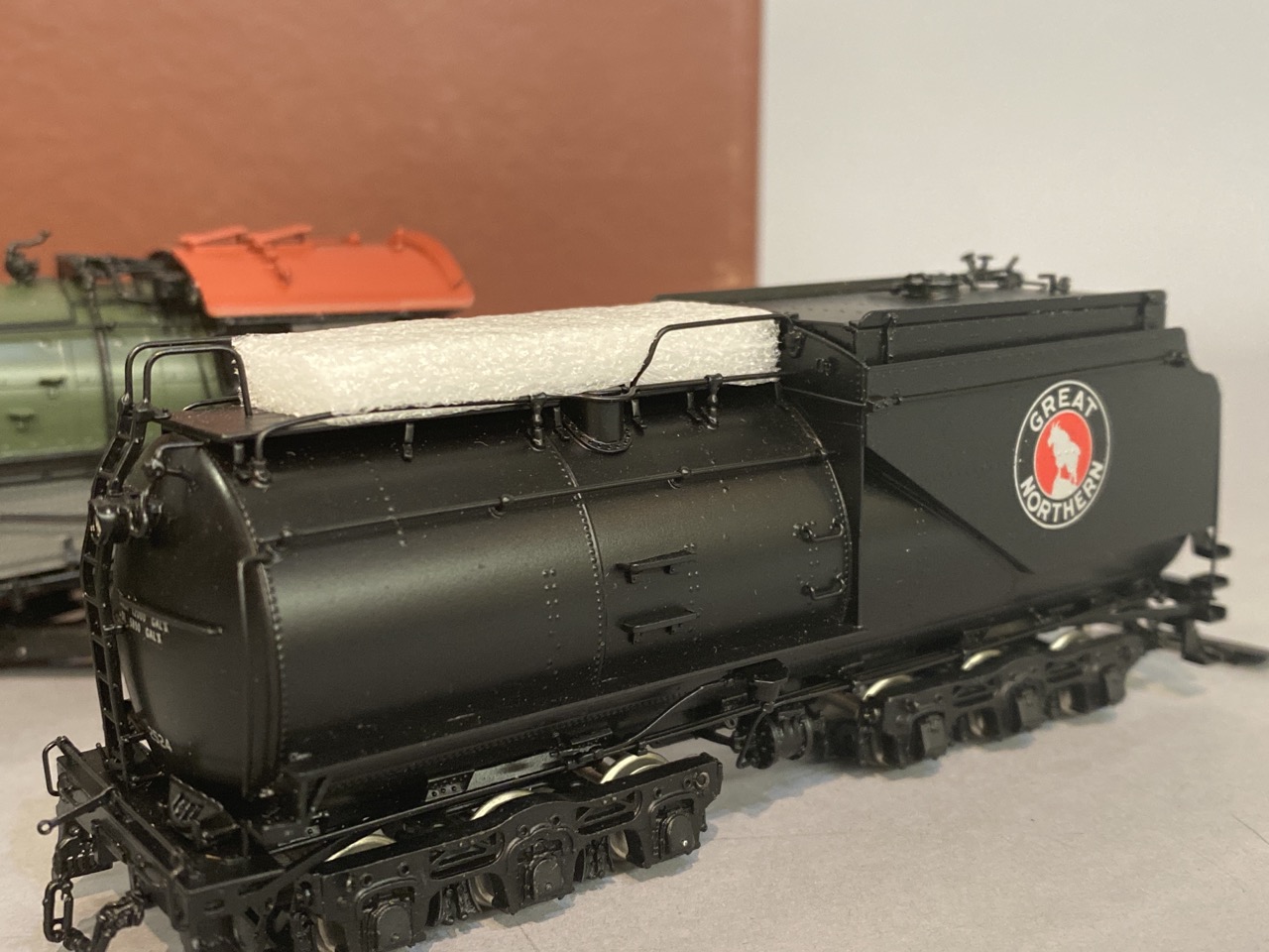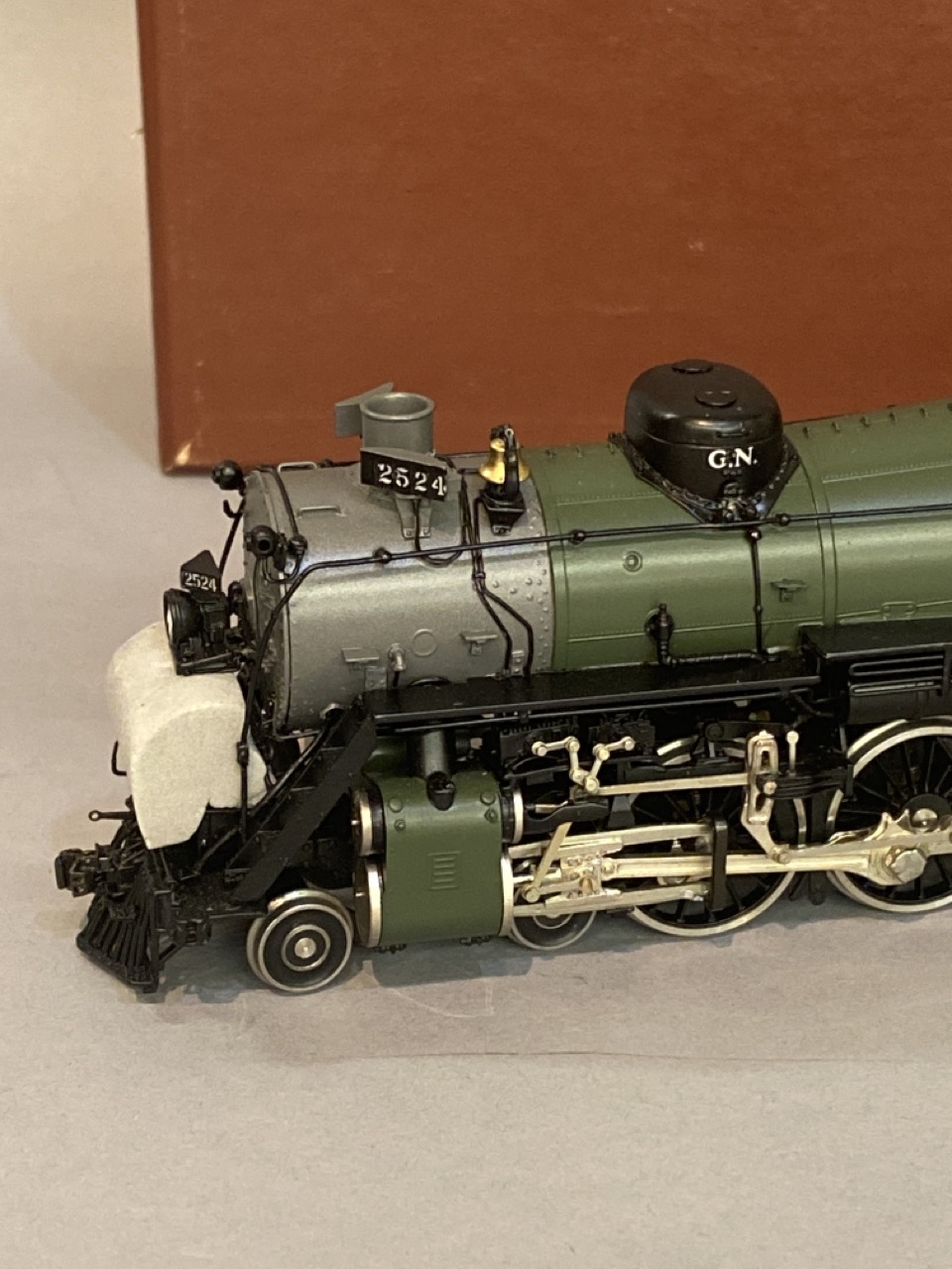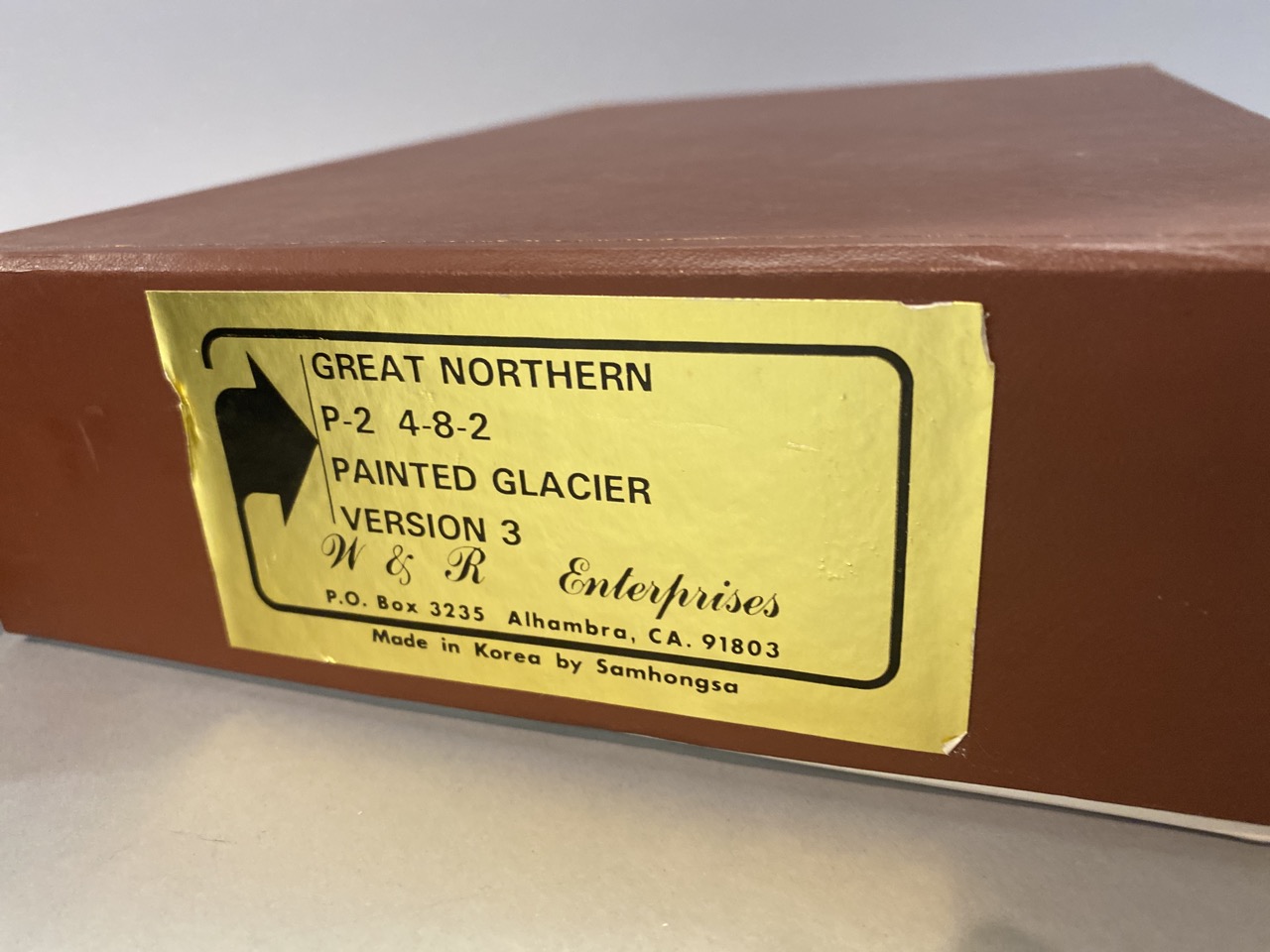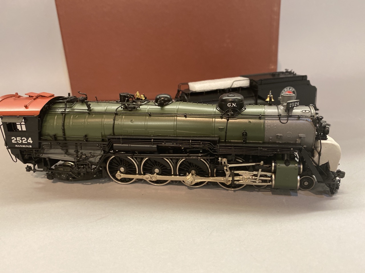 W&R Enterprises brass HO Locomotive train and tender Great Northern P-2 4-8-2 Version 3, painted Glacier. Original box, Made by Boo Rin,Korea.