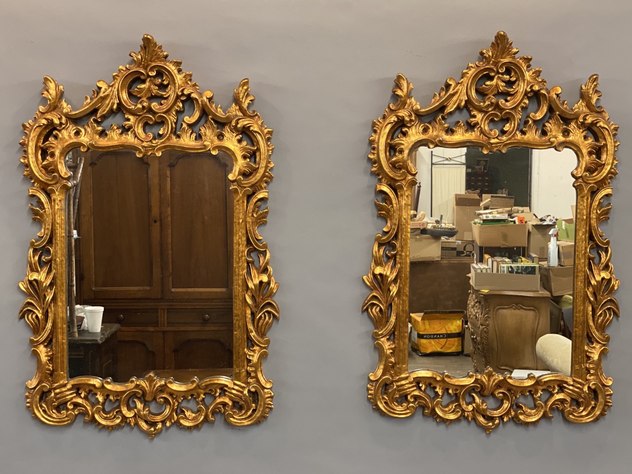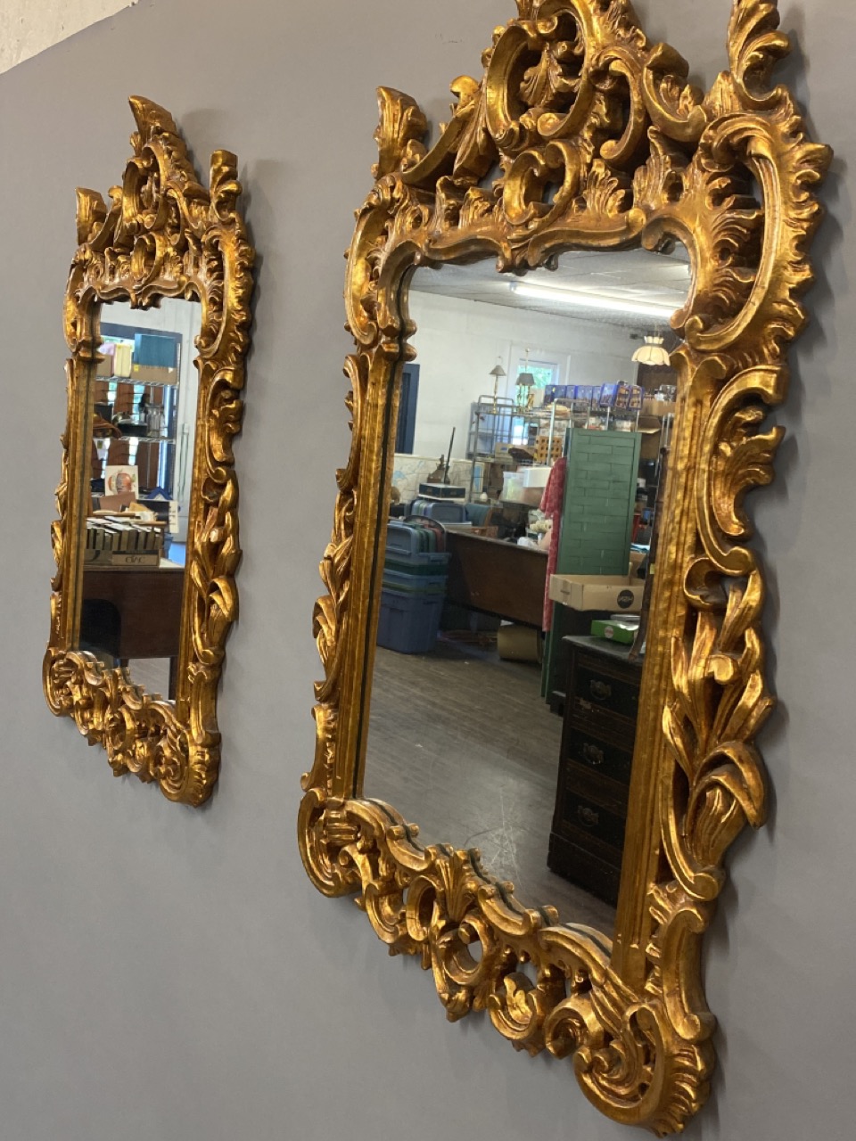 A pair of gold gilt Continental style mirrors. 20th century.