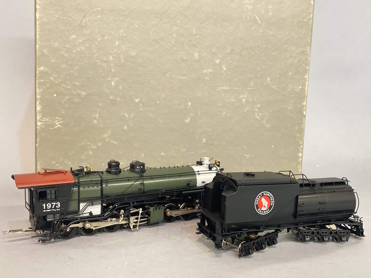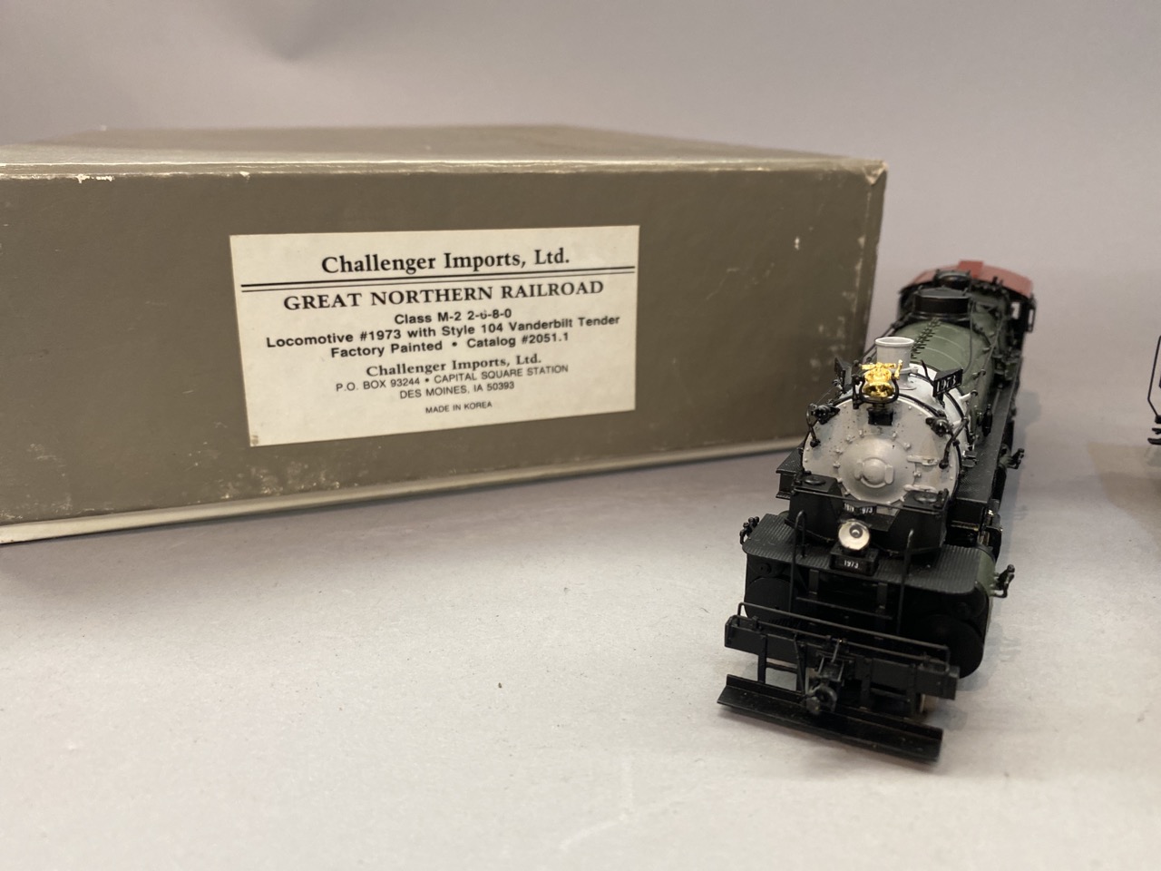 Challenger Imports GN Railroad Locomotive #1973 with 104 Vanderbilt style tender catalog 2051.1. Made in Korea.