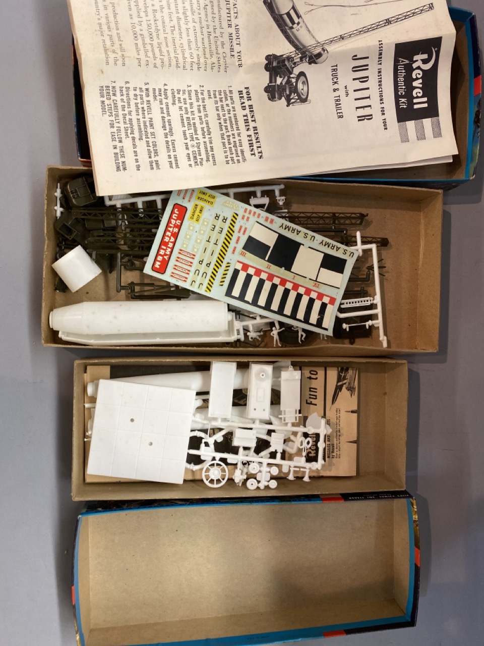 REVELL Jupiter with truck and trailer and US Army Redstone Chrysler surface to surface ballistic missile models, authentic kits. Unused.