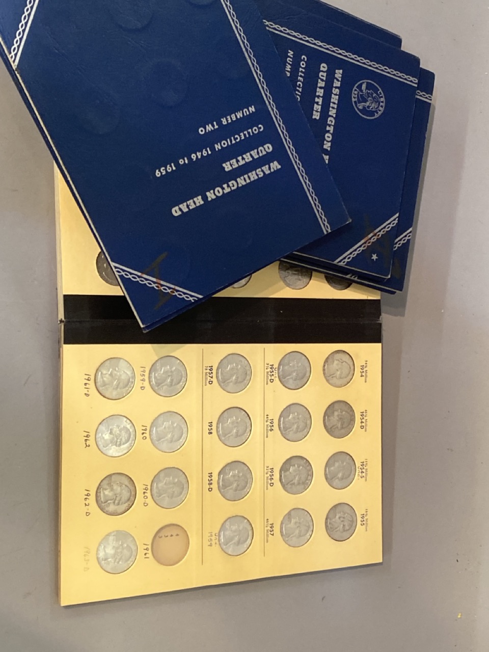 196 U.S. Washington Silver Quarters. Estate collection, books included.