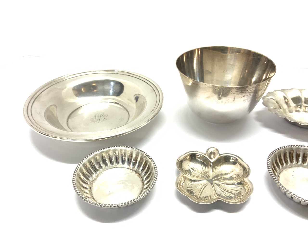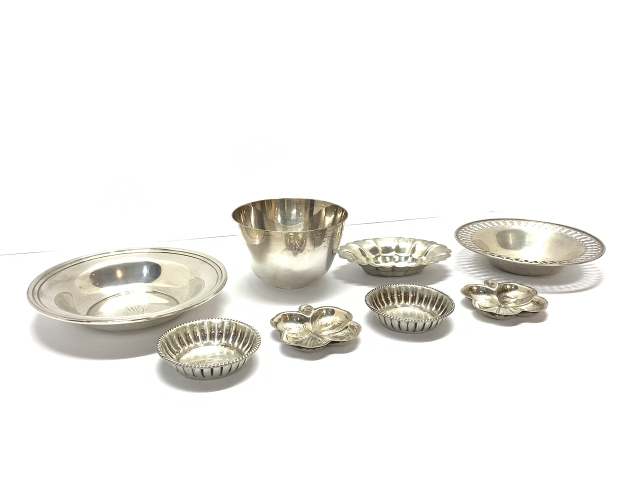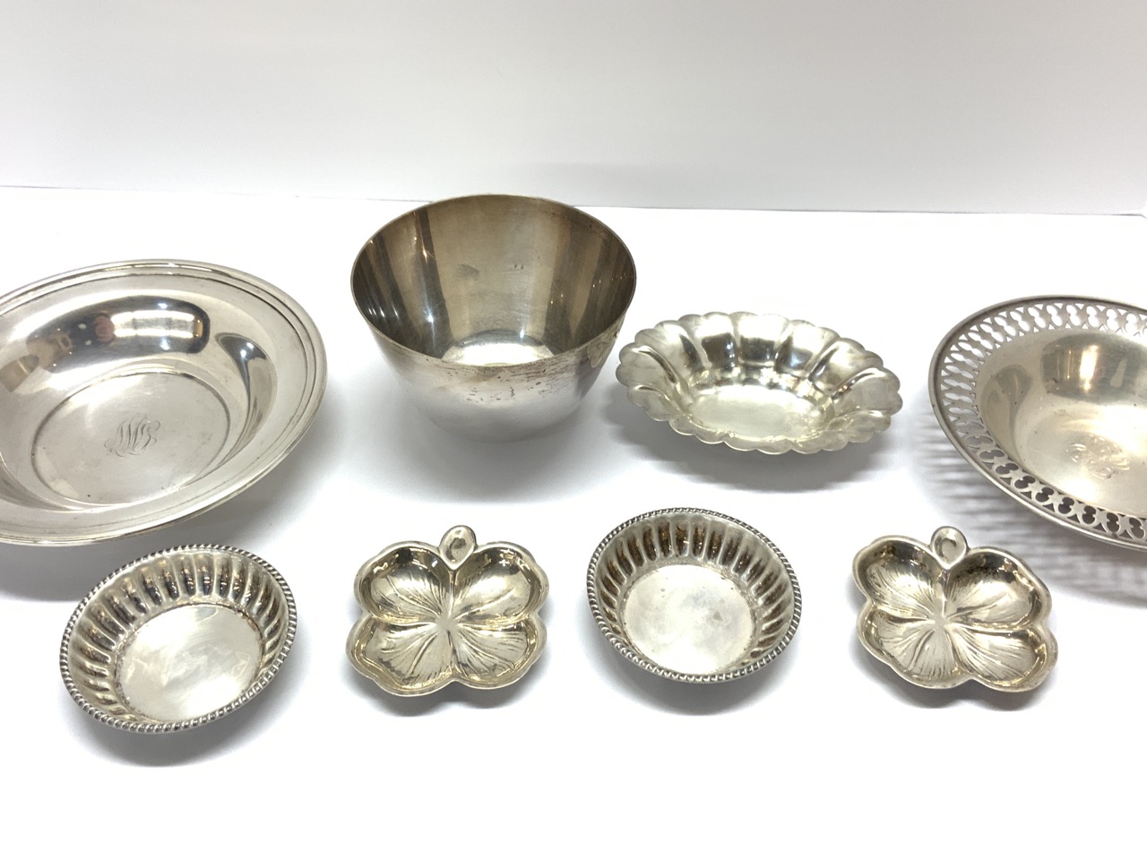 Compiled sterling silver grouping. Tablewares including Gorham, Lenox etc.