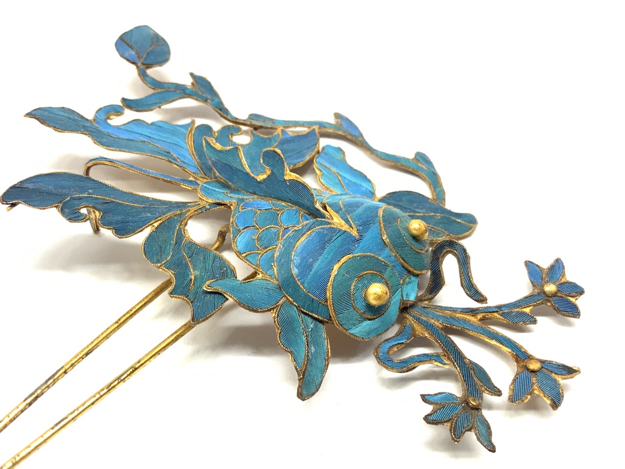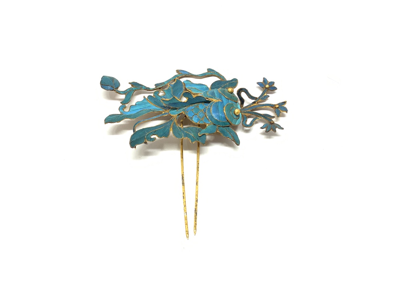 Chinese Kingfisher Blue Hair Piece In The Form Of A Crab