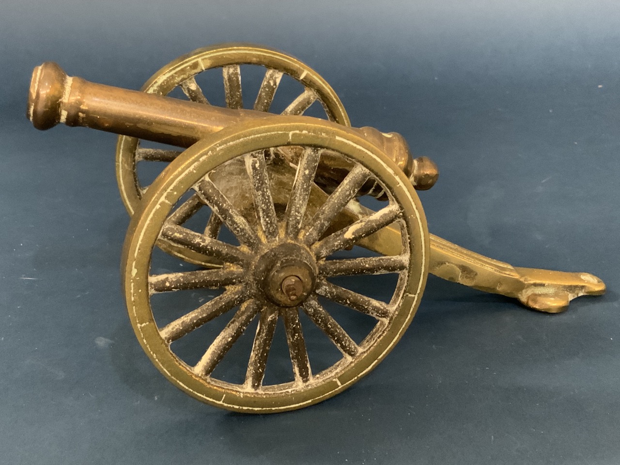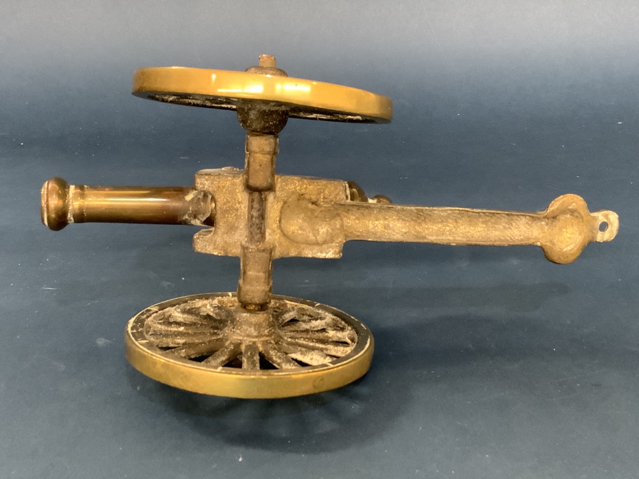 A small brass cannon model.